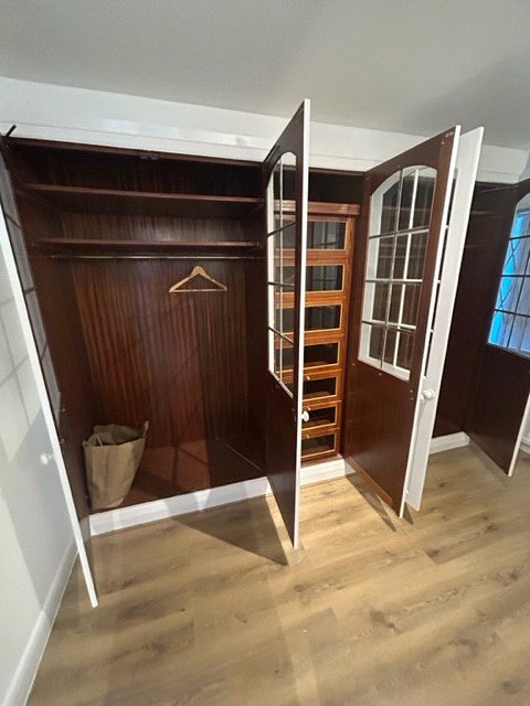 The two bedrooms have fitted wardrobes and a large storage cupboard.