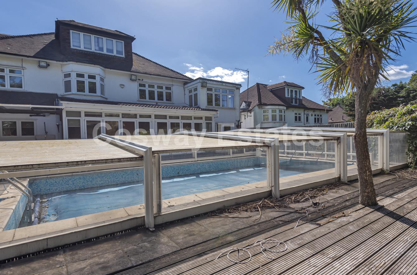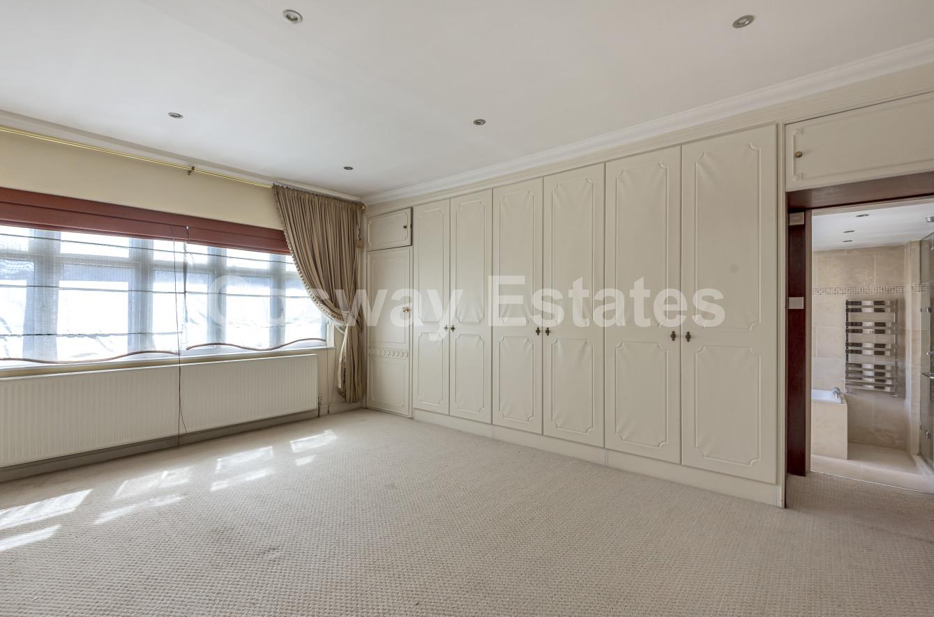 Cosway Estates are pleased to offer for rent this extremely large impressive detached family home set behind private electric gates, situated in Mill Hill. Offering a fantastic entrance hall; three reception rooms; fitted kitchen/diner; utility room/kitchen 2; six bedrooms; three bathrooms and a beautiful garden with covered outside lounge/ BBQ area and retractable covered heated swimming pool. Convenient location within easy access of Mill Hill Broadway & in the catchment area of several local schools. AVAILABLE NOW.
