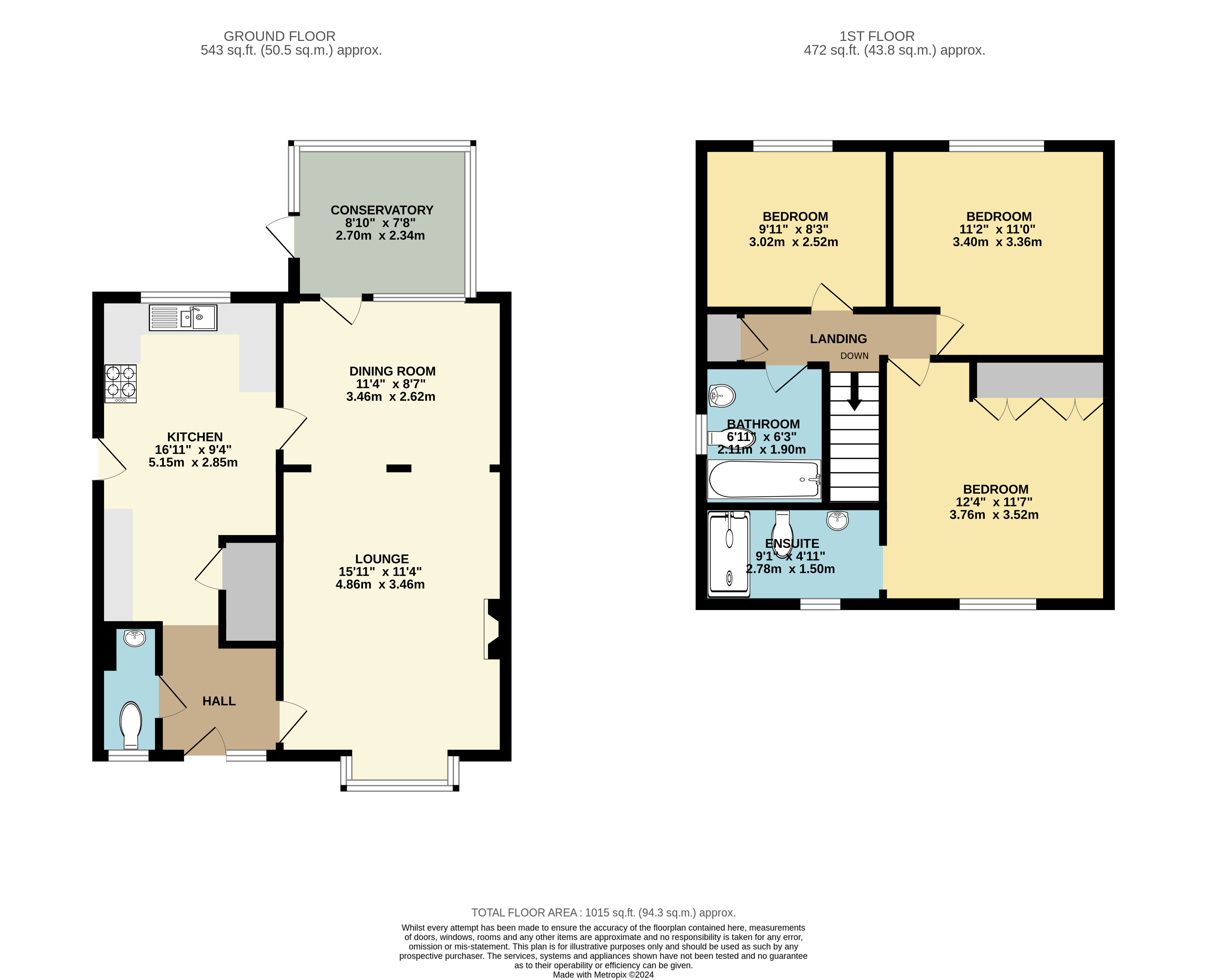 Brief internal accommodation comprises an entrance hallway, guest cloakroom, living room, dining room, kitchen and conservatory. The first floor offers three bedrooms, refitted en-suite and family bathroom. Externally the property boasts a private rear garden, driveway and detached garage.