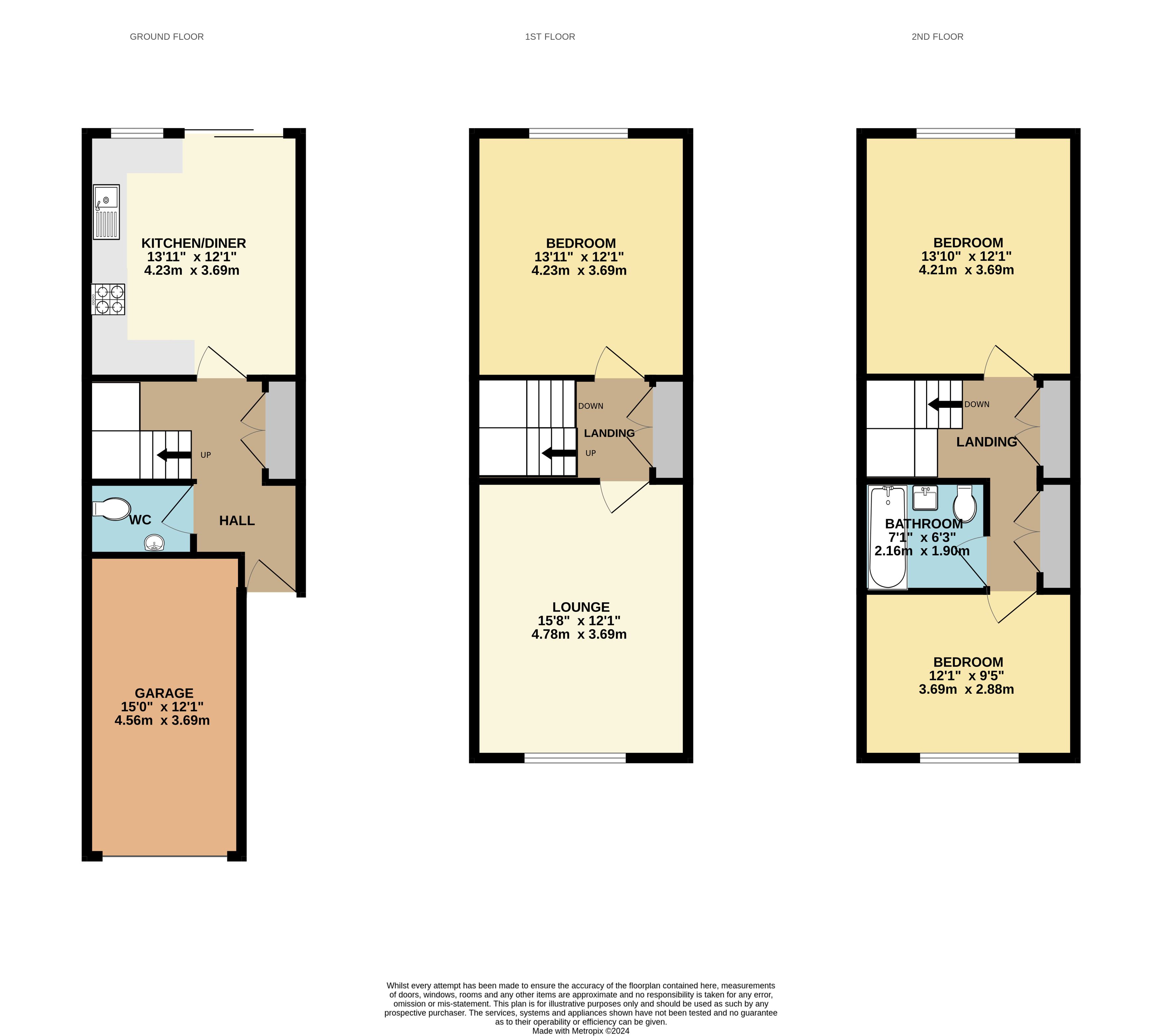 Brief internal accommodation comprises an entrance hallway, integral garage, guest cloakroom and kitchen/diner. The first floor offers a spacious living room with balcony and master bedroom. The second floor provides a further two double bedrooms and refitted bathroom. Externally the property boasts a private rear garden.