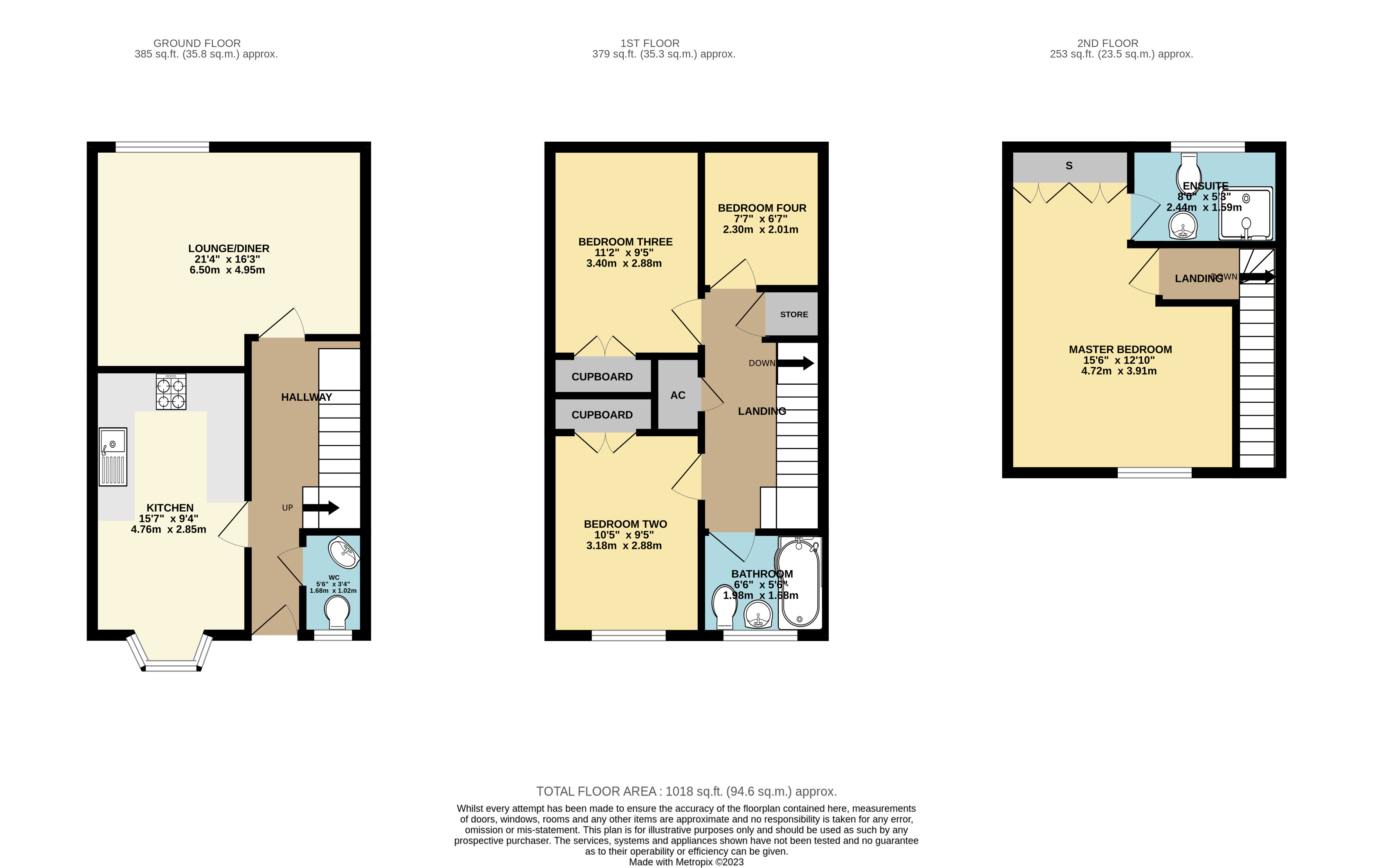 Brief internal accommodation comprises an entrance hallway, guest cloakroom, kitchen/diner and living room. The first floor offers three bedrooms and a family bathroom. The second floor provides the large master bedroom and en-suite. Externally the property boasts a rear garden, driveway and garage.