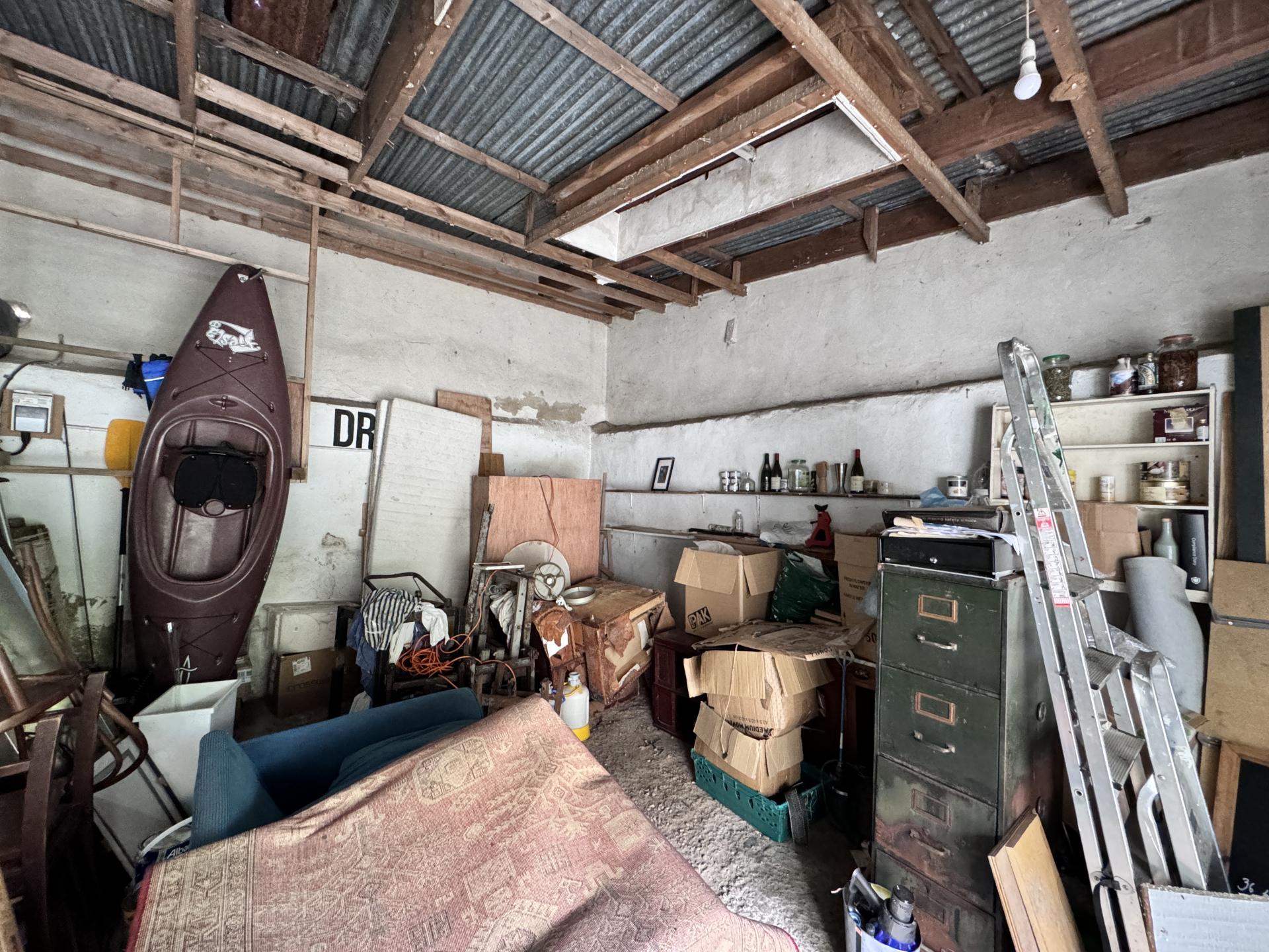 The GARAGE 19' 9'' x 14' 3'' (6.02m x 4.34m) is situated just down from the cottage with a metal up and over door, a high corrugated iron roof, concrete floor, power and light and space for a car, work bench and storage.
