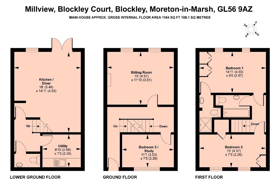 Further attractions include a lower ground floor utility room, gas fired central heating, a ground floor bedroom or study and two allocated parking spaces within Blockley Court. The property has recently been redecorated throughout.