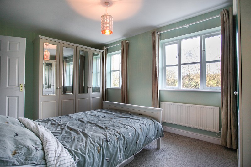 With corner sited double partially mirrored wardrobe, single radiator. North-westerly aspect towards St Peter and St Pauls Church. Built-in understairs airing cupboard with foam-lagged cylinder and immersion heater.