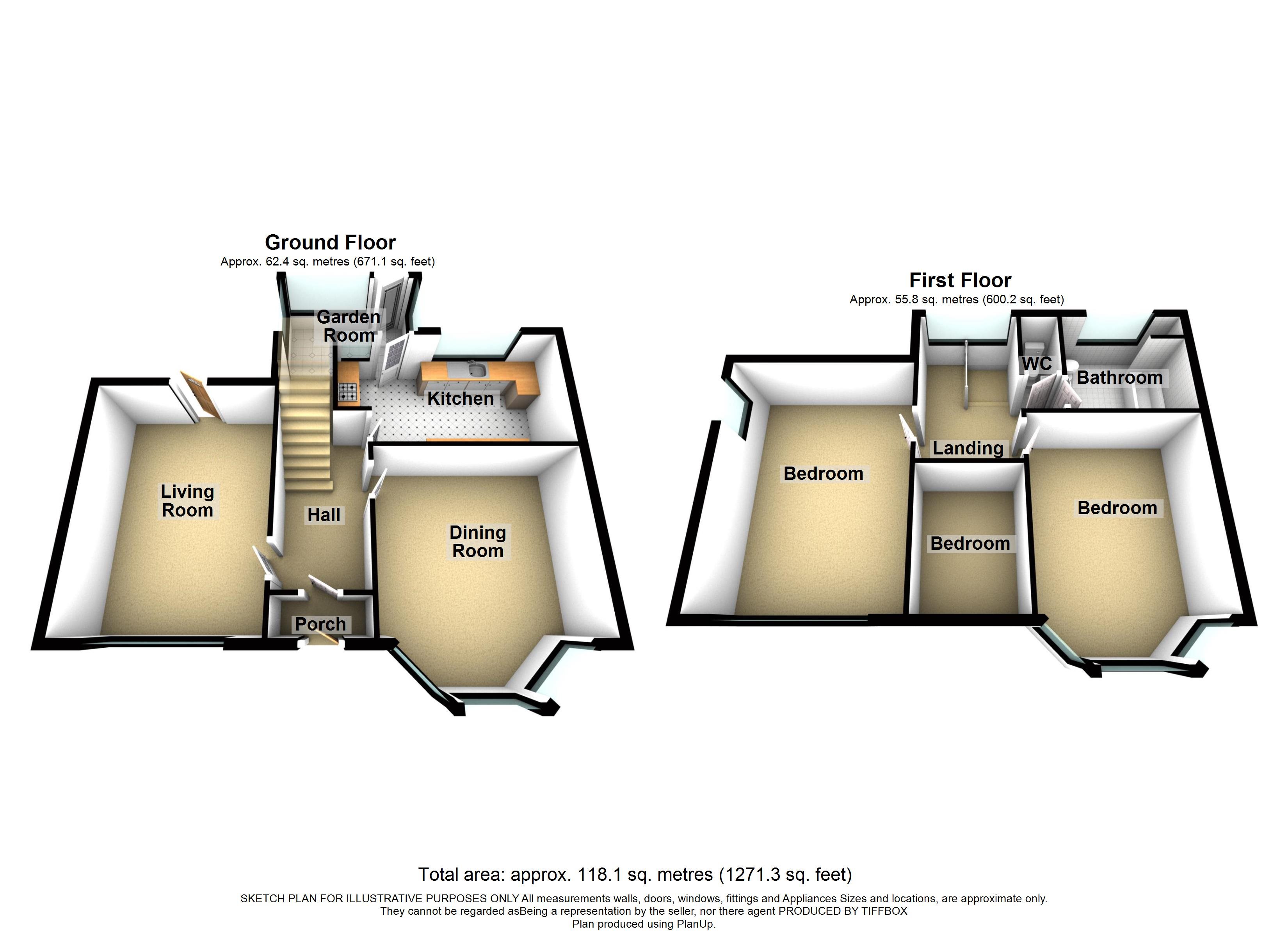To the first floor are three bedrooms, bathroom with white suite and separate WC.