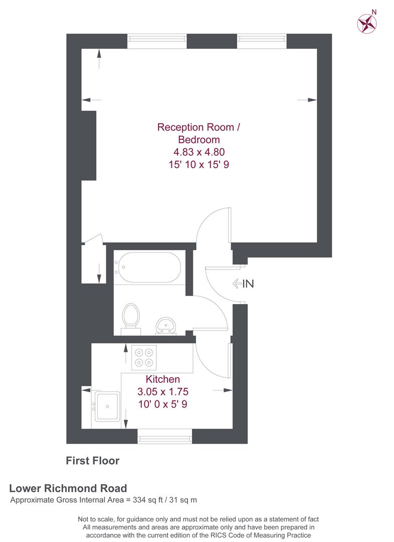 The property boasts a studio style reception and bedroom with wooden flooring, neutral decor and views over the playing fields opposite. The fully fitted kitchen offers plenty of storage and worktop space for cooking. The three piece bathroom is in good order and with white tiling throughout. In addition tenants have use of the rear garden which has been separated into private areas. The River Thames, Richmond Park and Richmond Town Centre are all very local to the property. Mortlake Station is very close by and provides links to Waterloo in 23 minutes.