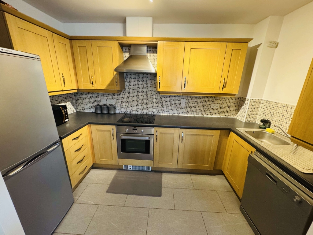Briefly comprising; Communal Entrance Hall (secure intercom access), stairway to 3rd floor, Secure internal door to private apartment, hallway, family bathroom, storage cupboard, 2 DOUBLE bedrooms, open plan lounge-kitchen, lounge having panoramic windows and kitchen having white goods included (fridge freezer, washer-dryer and dishwasher). Externally there is ample parking in the car park for visitors as well as an allocated space with this apartment.