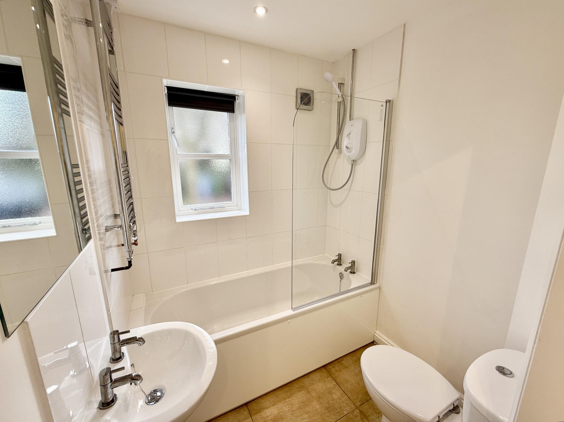 - Bathroom with over-bath shower