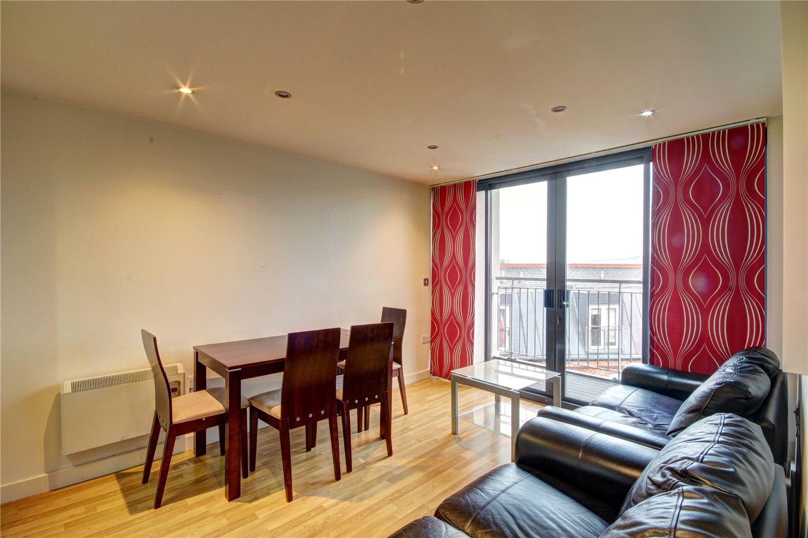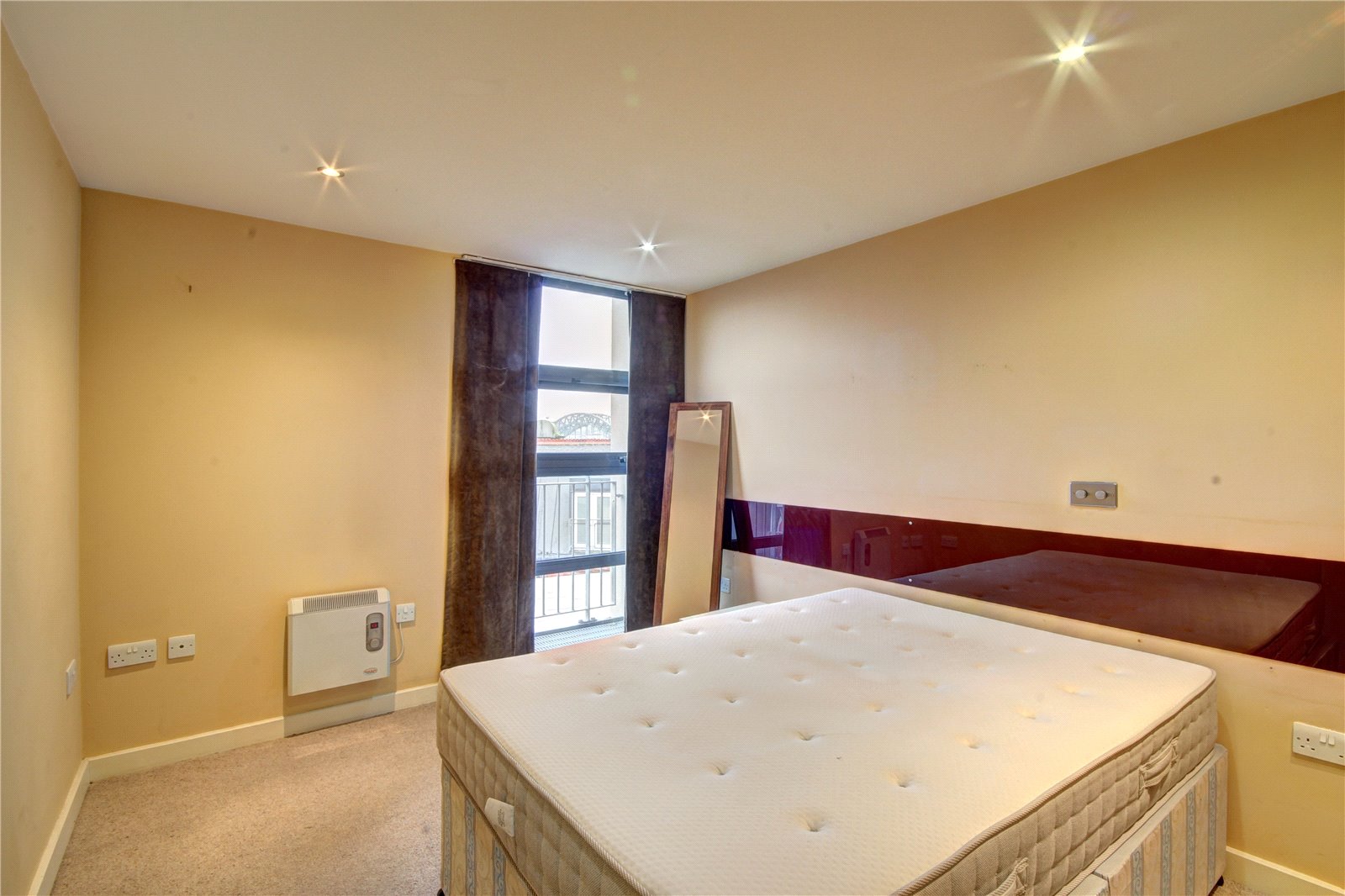 Double glazed window, wall mounted electric heater.