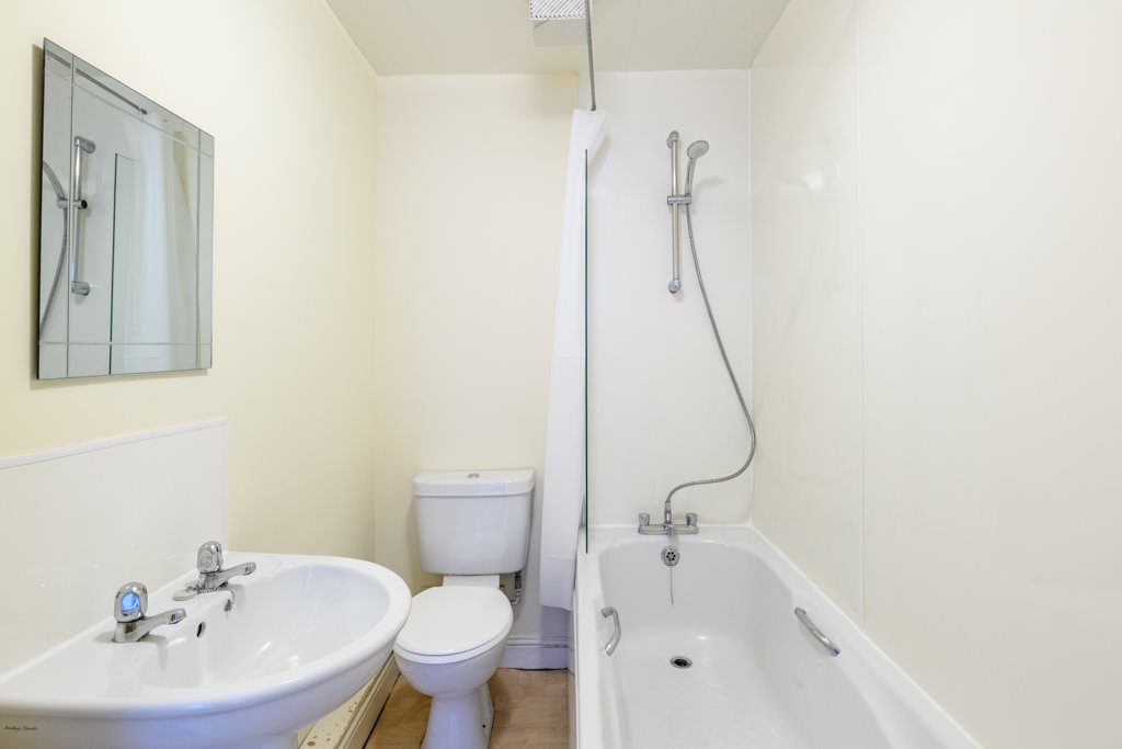 Bath, shower with mixer tap, WC, hand wash basin.