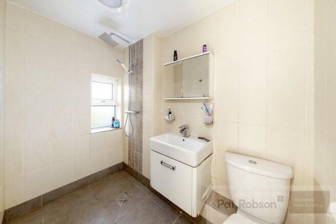 Bathroom - 2.25 x 1.46 (7'4" x 4'9") - Upvc window to rear aspect, shower cubicle, WC, wash hand basin, chrome towel rail, fully tiled walls, non slip flooring with floor drain.