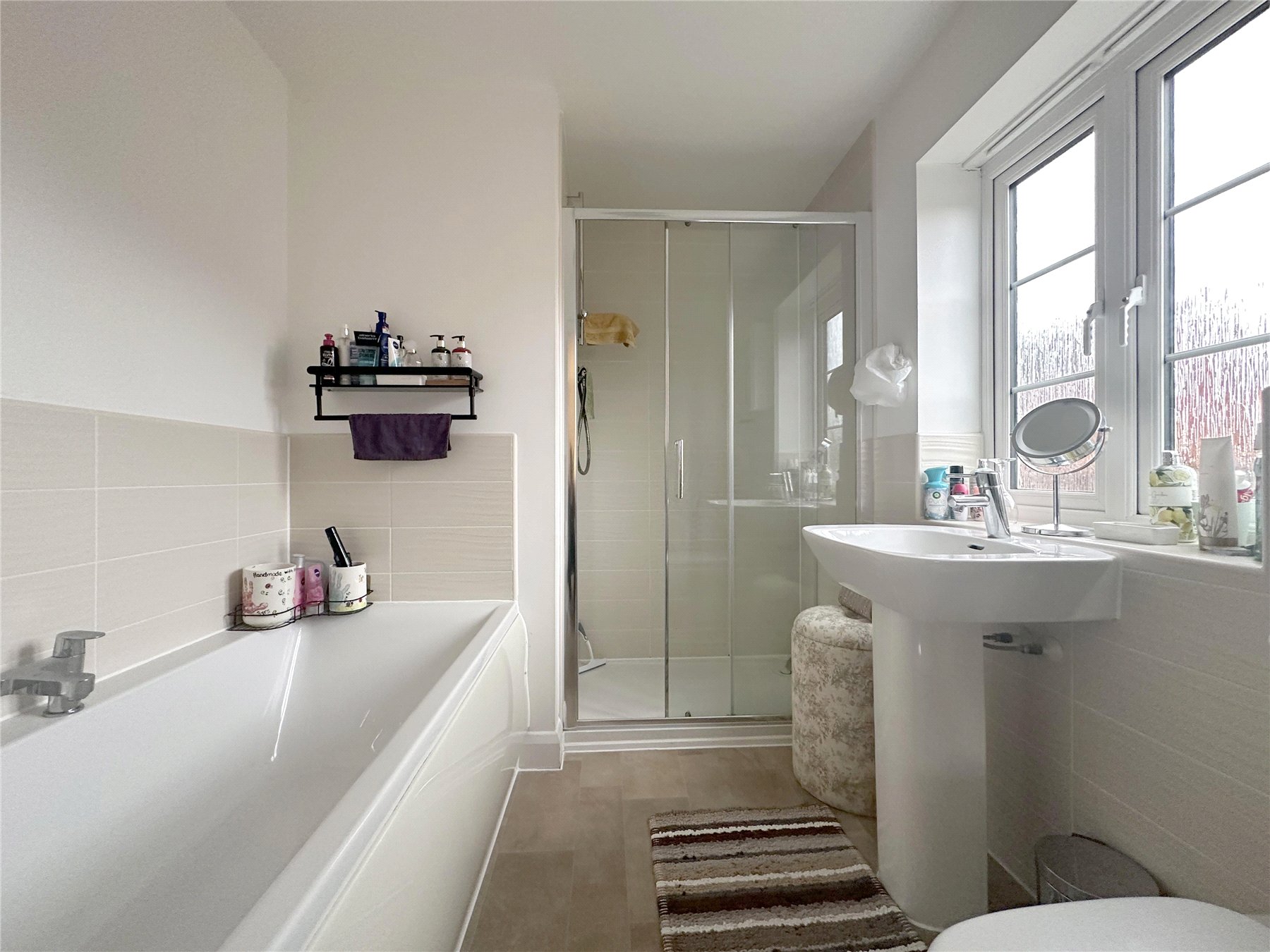 EN SUITE Low level WC, wash hand basin, shower cubicle and bath. Obscured double glazed window to side aspect.