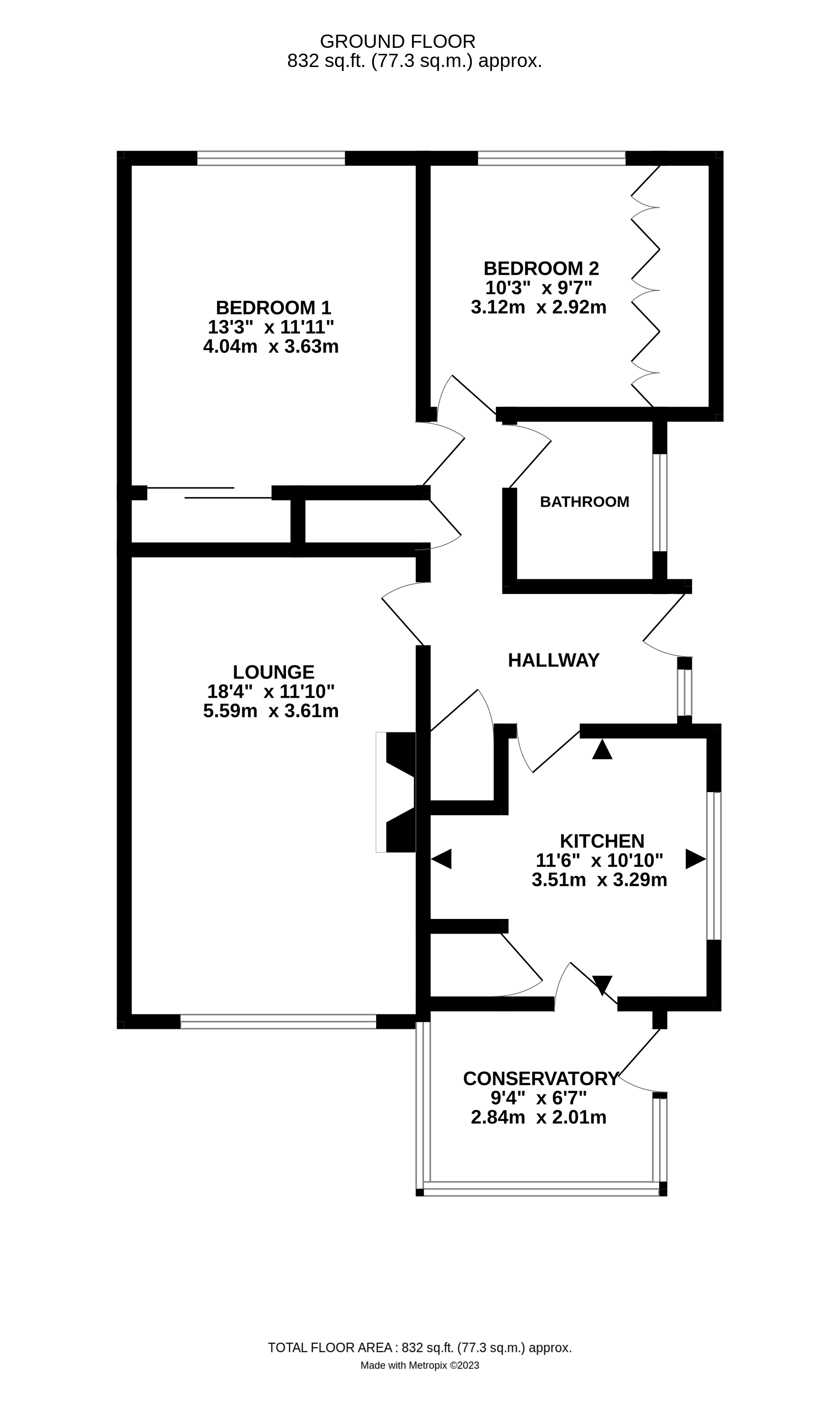 - Detached Bungalow Two Bedrooms Good Sized Living room Kitchen Conservatory Bathroom Gas Radiator Central Heating Double Glazing Garage and delightful gardens EPC C Council Tax band D