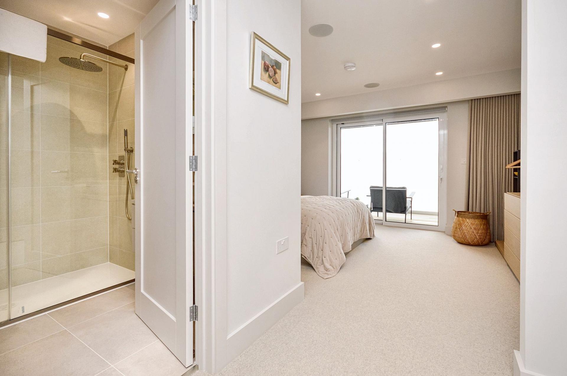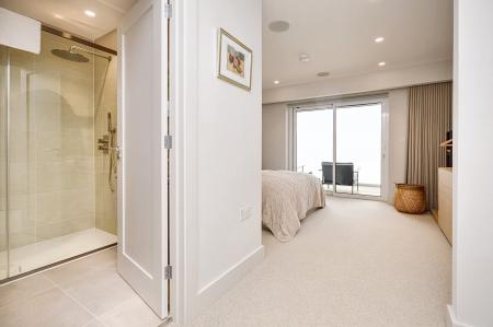 On the ground floor, you're welcomed by an entrance hallway leading to the principal bedroom which includes a stylish en-suite, dressing area, and a covered sea-view balcony.
