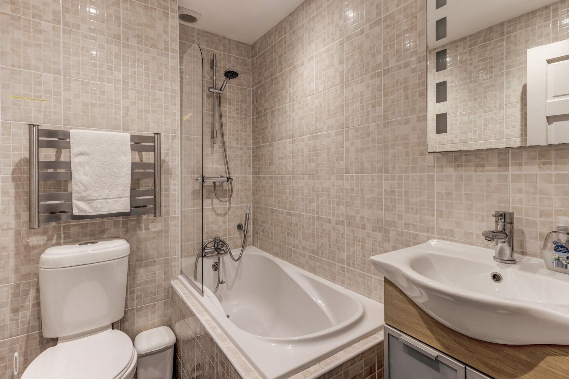 - MODERN TILED BATHROOM WITH SHOWER OVER BATH