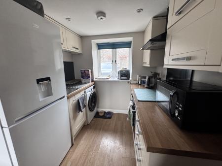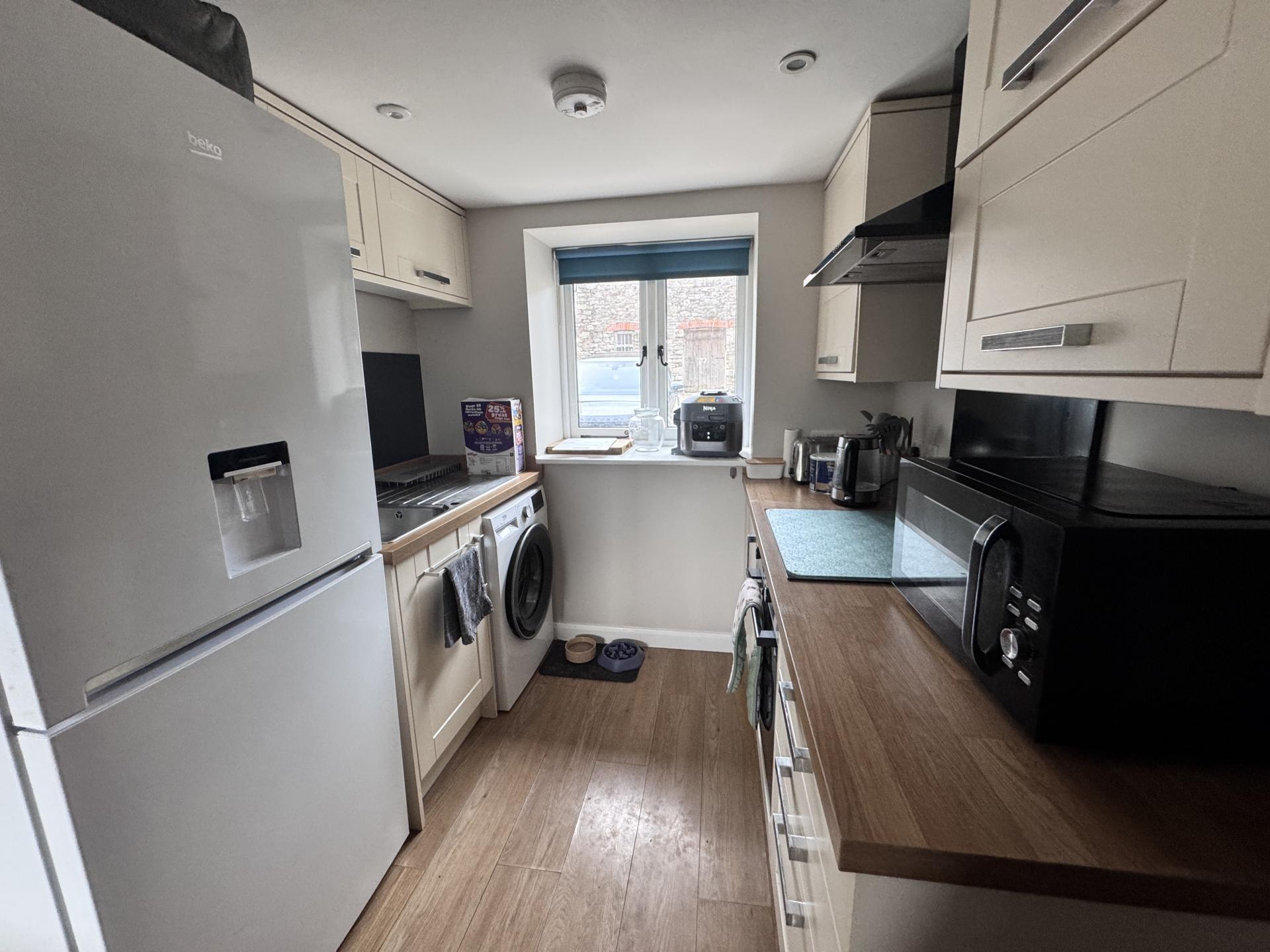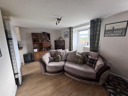Head in to the open plan Living space 15' 7" x 9' 5" (4.75m x 2.87m) which has windows to the front and rear. To one side is a fitted kitchen 7' 2" x 6' 2" (2.18m x 1.88m) with electric cooker and hob with extractor over. There is space for an upright fridge/freezer. There is also a WC to the ground floor and door leading out from the rear lobby to the farm yard.