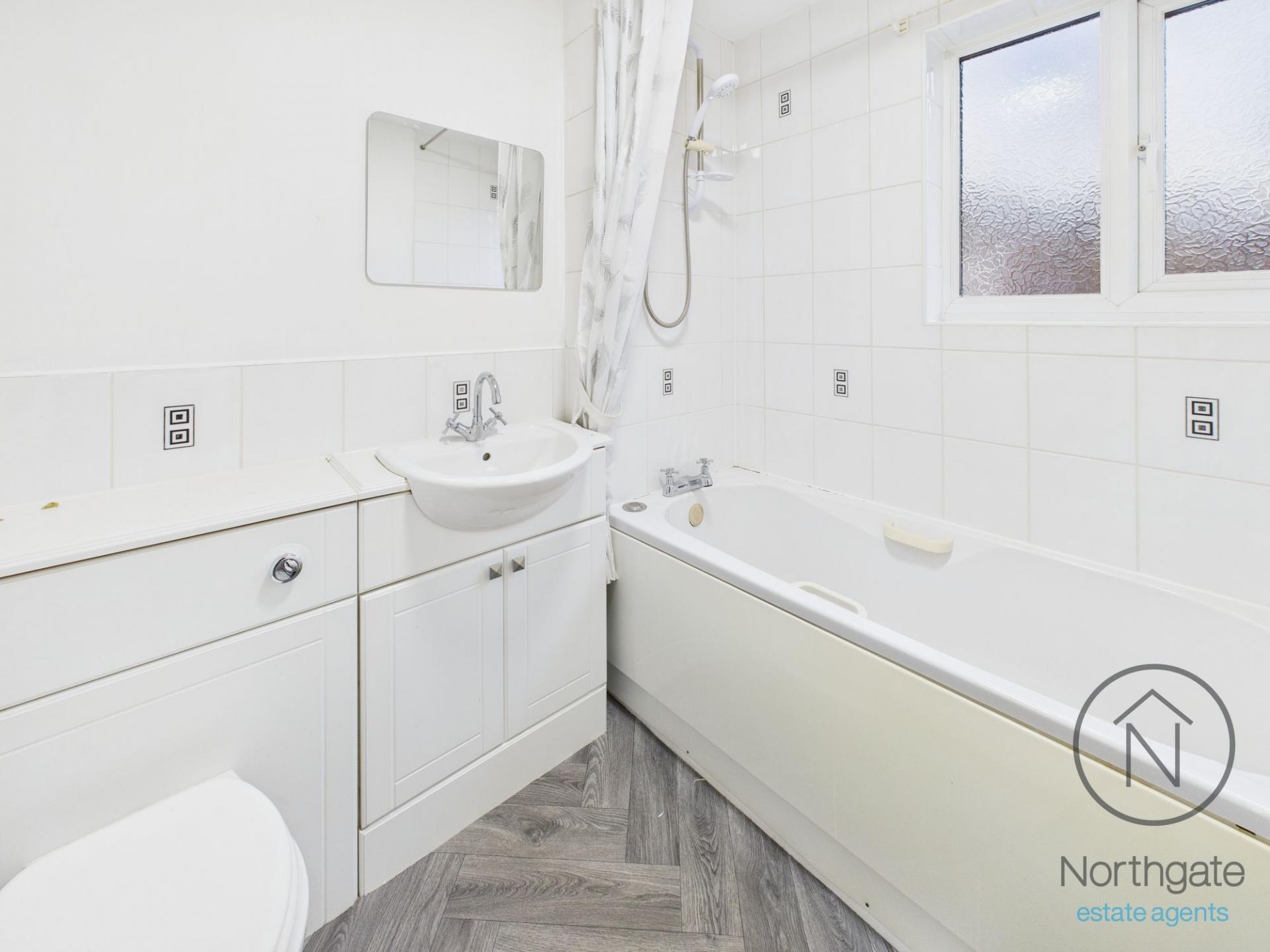 - First floor includes three bedrooms and a bathroom with shower over bath.