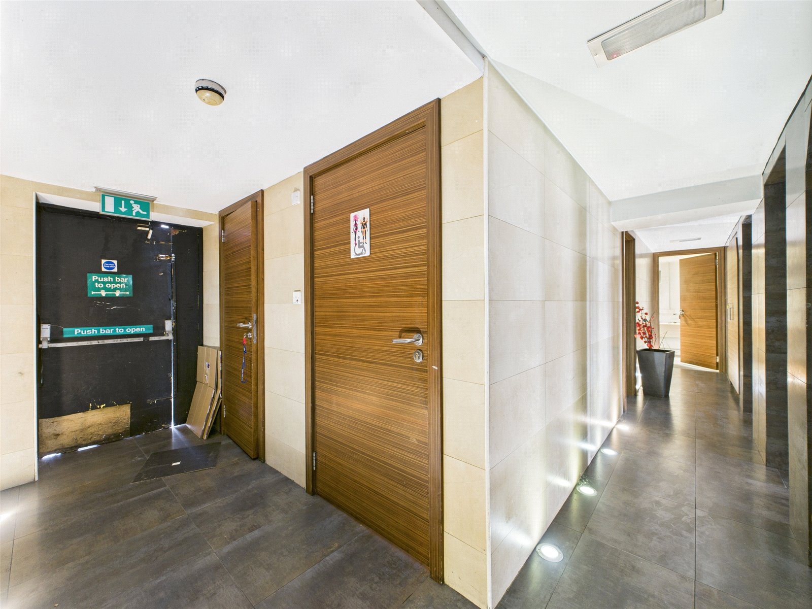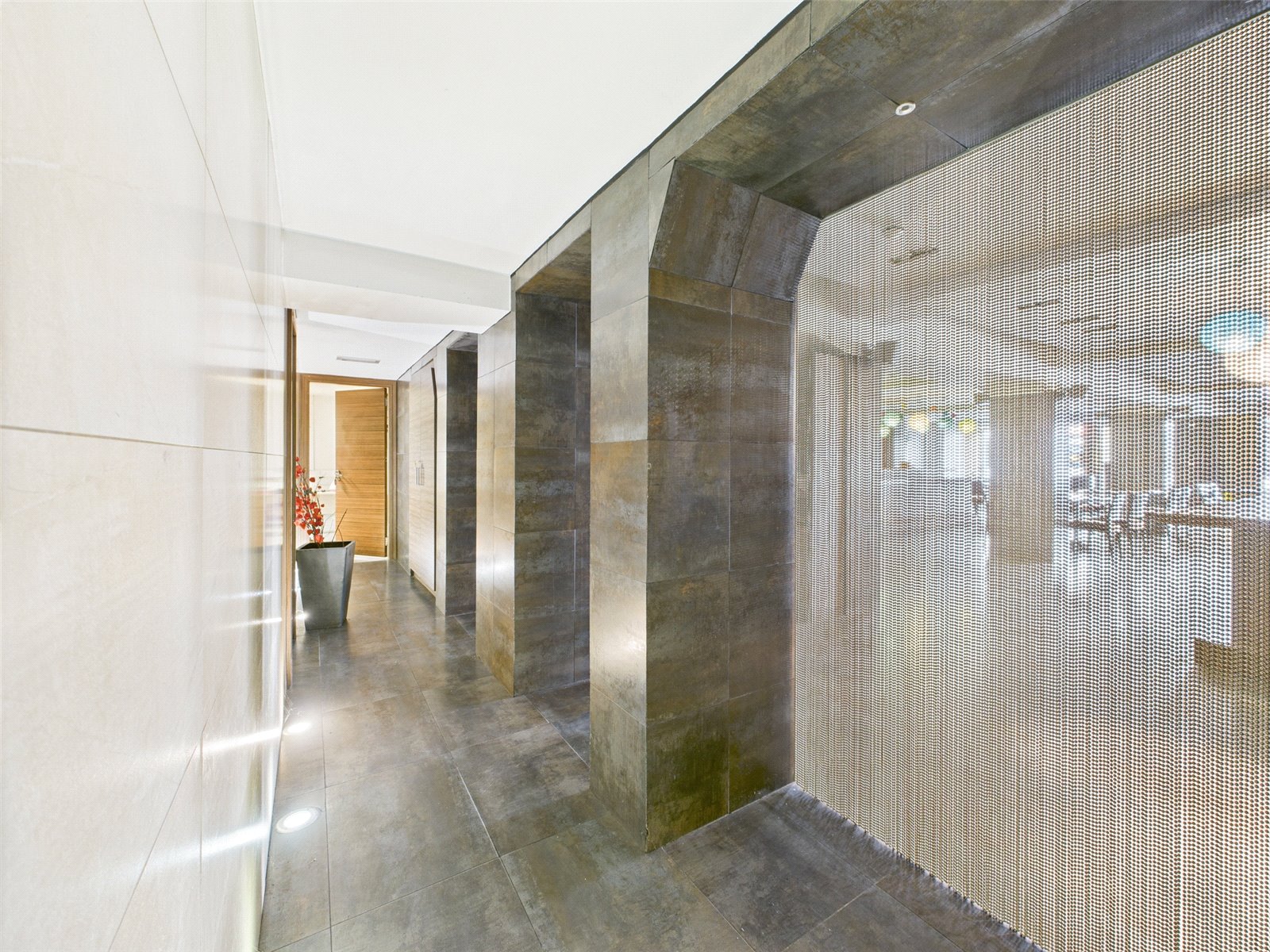 - Hallway offered a tiled floor and floor spotlight, a build in storage and partly tiled walls.