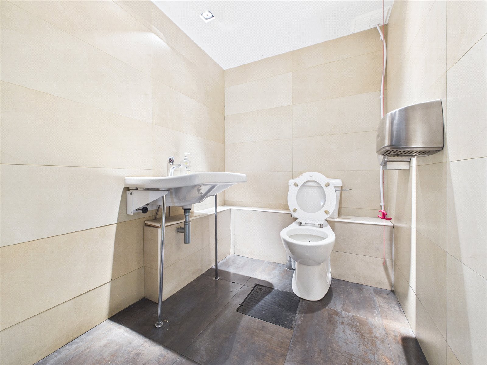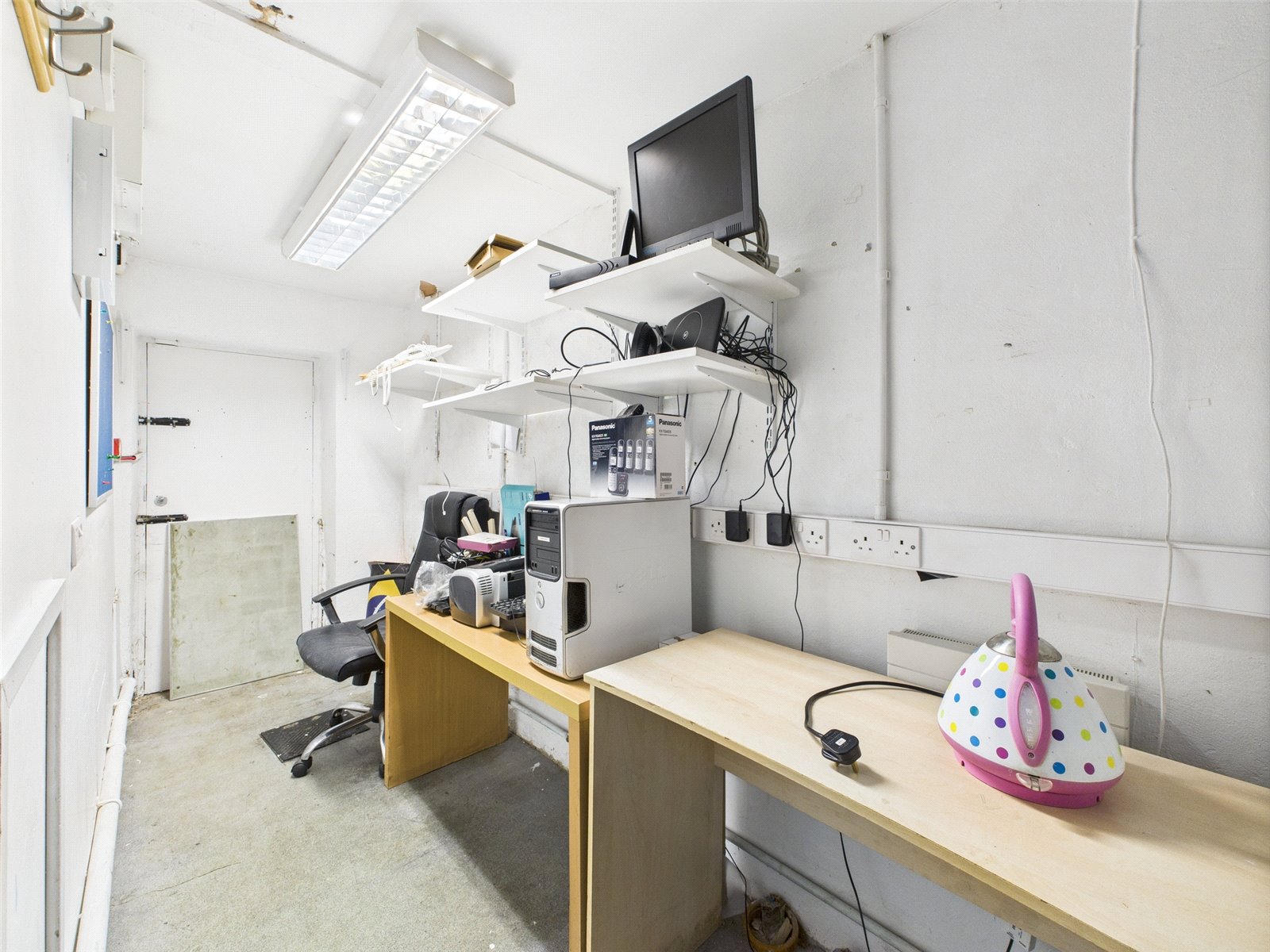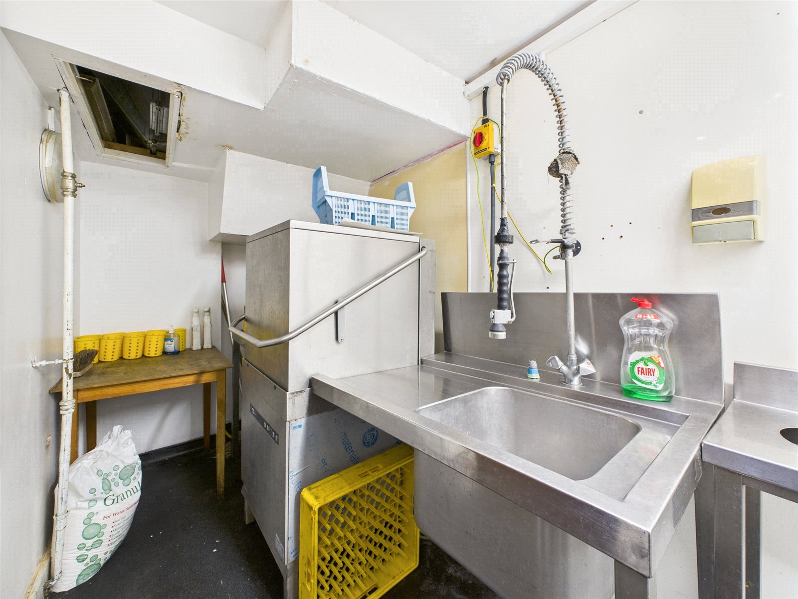 - Kitchen porter area with appliance fittings, pot wash, ample storage, ceiling lighting, and roof access hatch