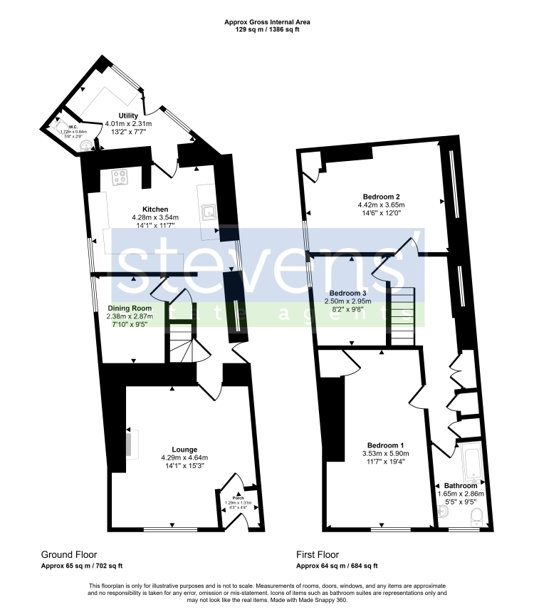 The ground floor offers generous and versatile living accommodation, comprising a bright living room, a separate dining room which could also be used as a home office, a well-appointed kitchen, a useful utility room, and a downstairs cloakroom. To the first floor are three good-sized bedrooms and a modern family bathroom, providing comfortable accommodation for families or professionals alike.