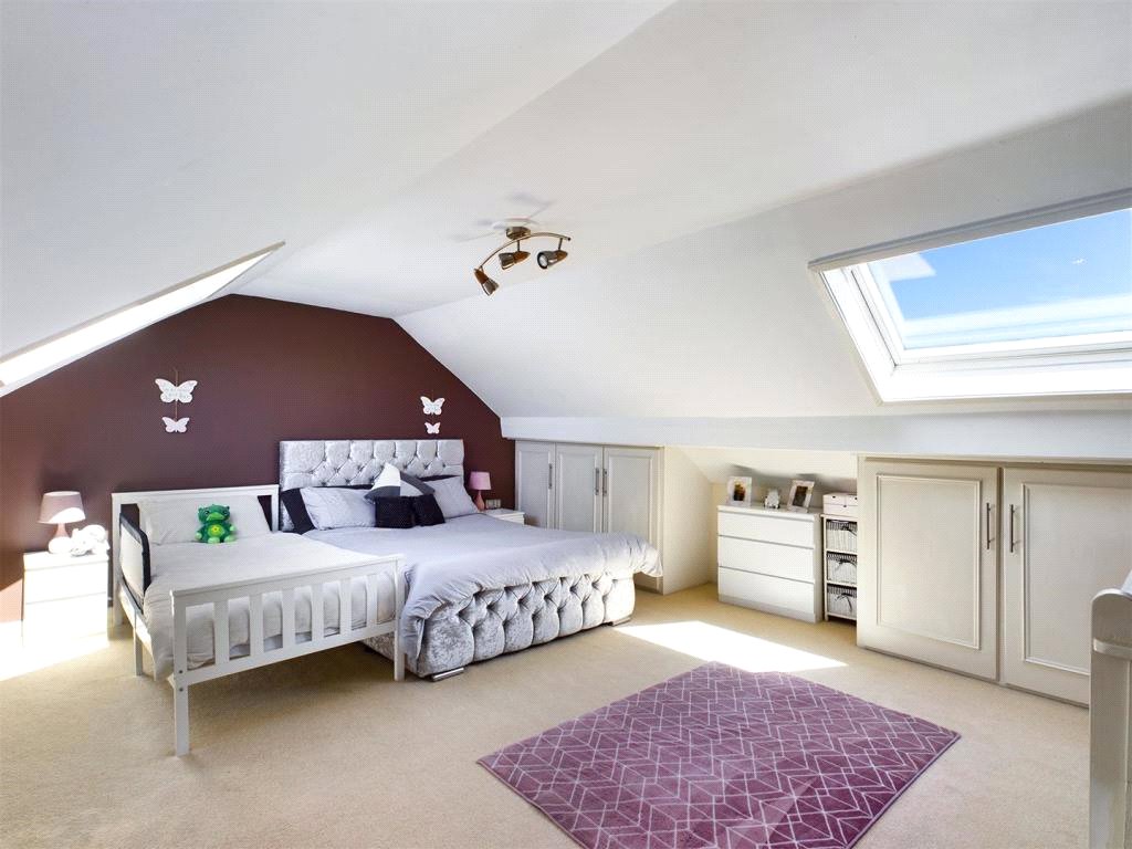 Bedroom 5 Large attic room. Fitted carpet. Built in wardrobes and drawers. Electric radiator. 2 large bay windows.