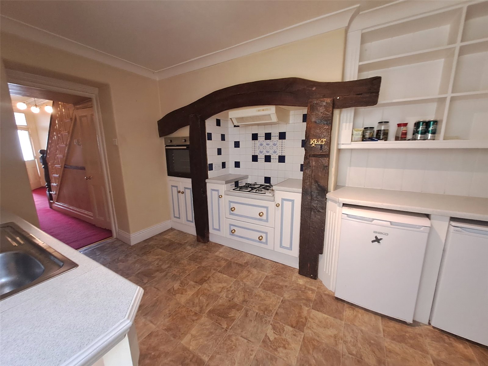 Kitchen Tiled effect vinyl flooring. Range of wall and base units. Stainless steel sink. Undercounter fridge and freezer. Free standing dishwasher. Built in oven, gas hob and extractor hood. Radiator.
