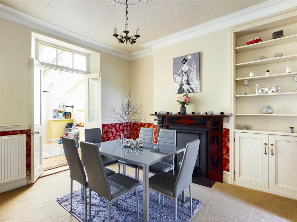 Dining Room Spacious dining room. Fitted carpet. Coved ceiling. Ceiling rose. Radiator. built in alcove shelved units. Feature fireplace.