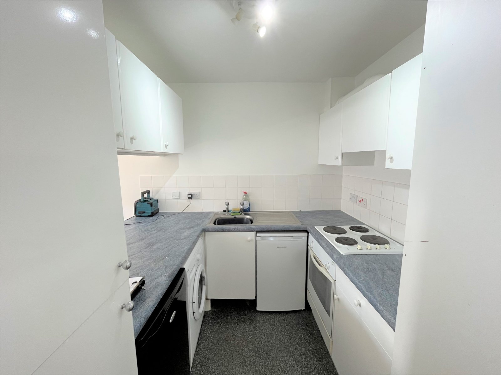 Offered unfurnished, the accommodation comprises: an entrance hallway, a spacious open-plan lounge/diner with fitted kitchen (including oven, hob, fridge, and washer/dryer), a bathroom with shower over bath, and a generous double bedroom.