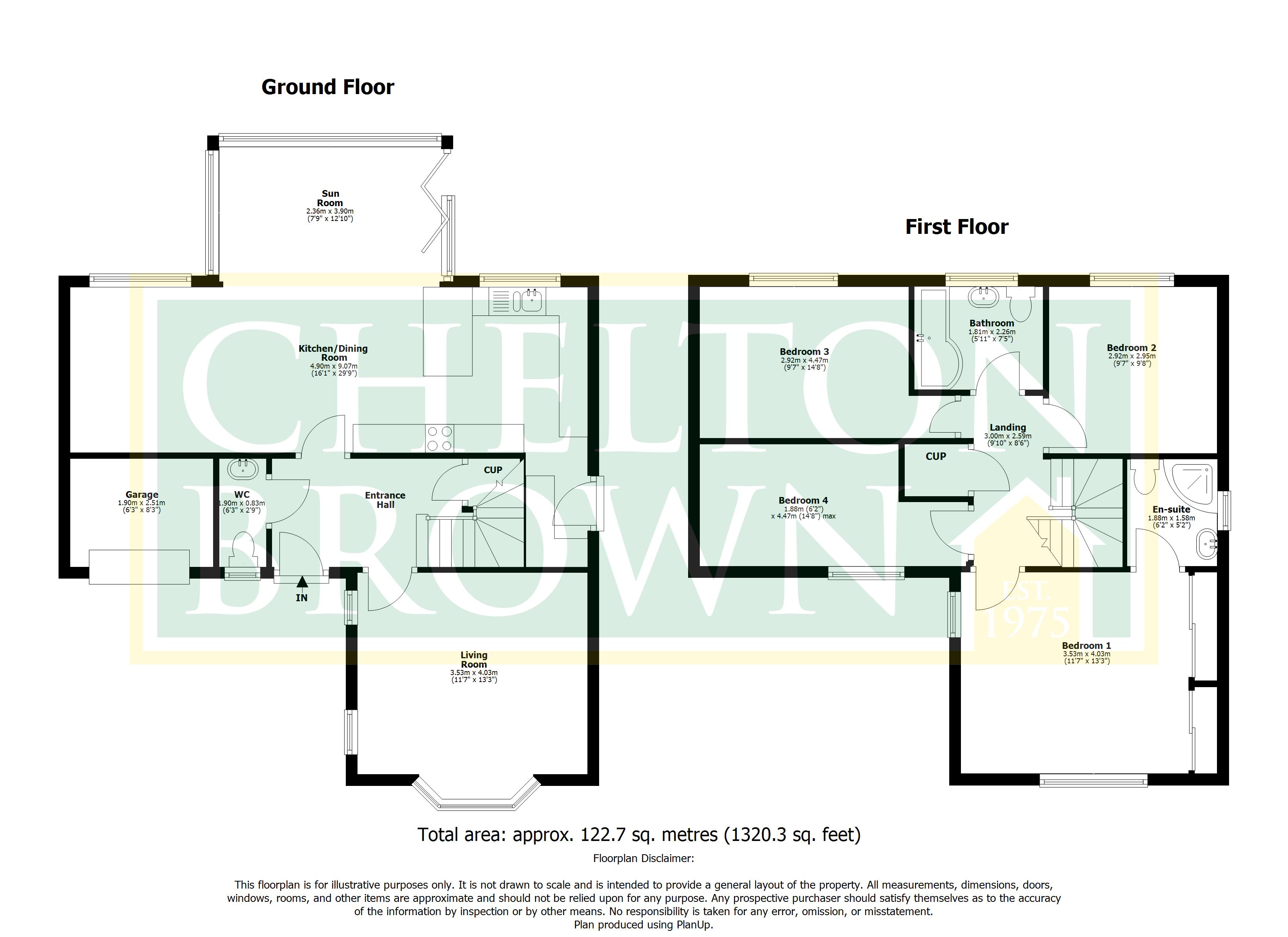 Bedroom 1 13'3" x 11'7" (4.04m x 3.53m). plus 0.54m (1'9") x 0.54m (1'9")