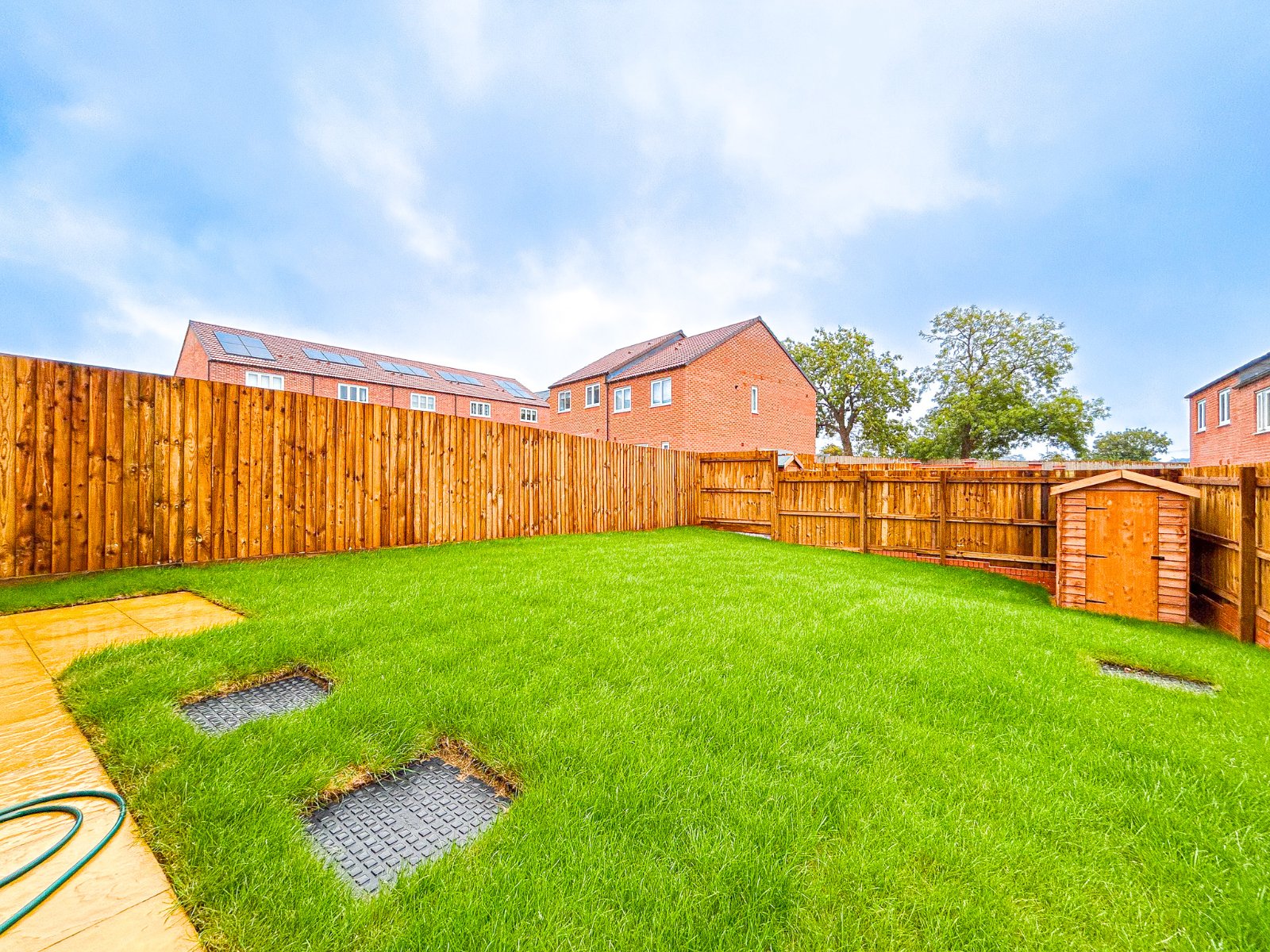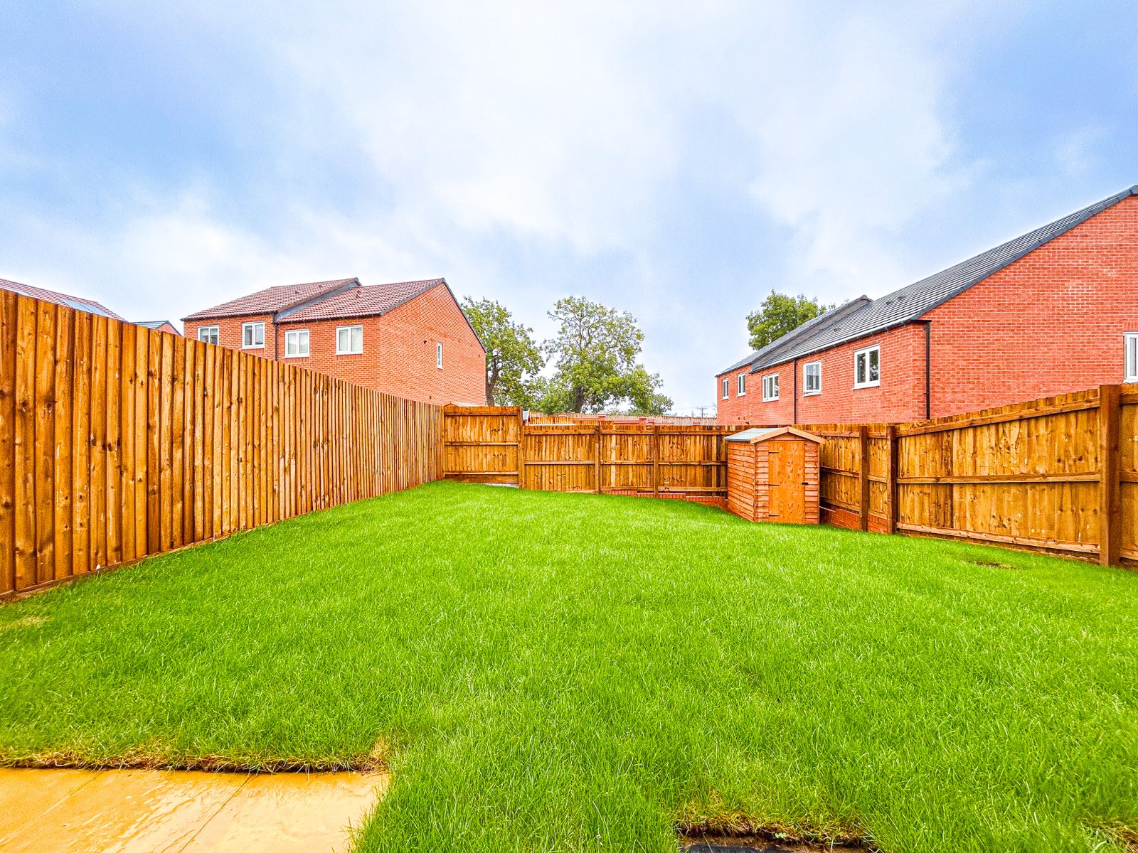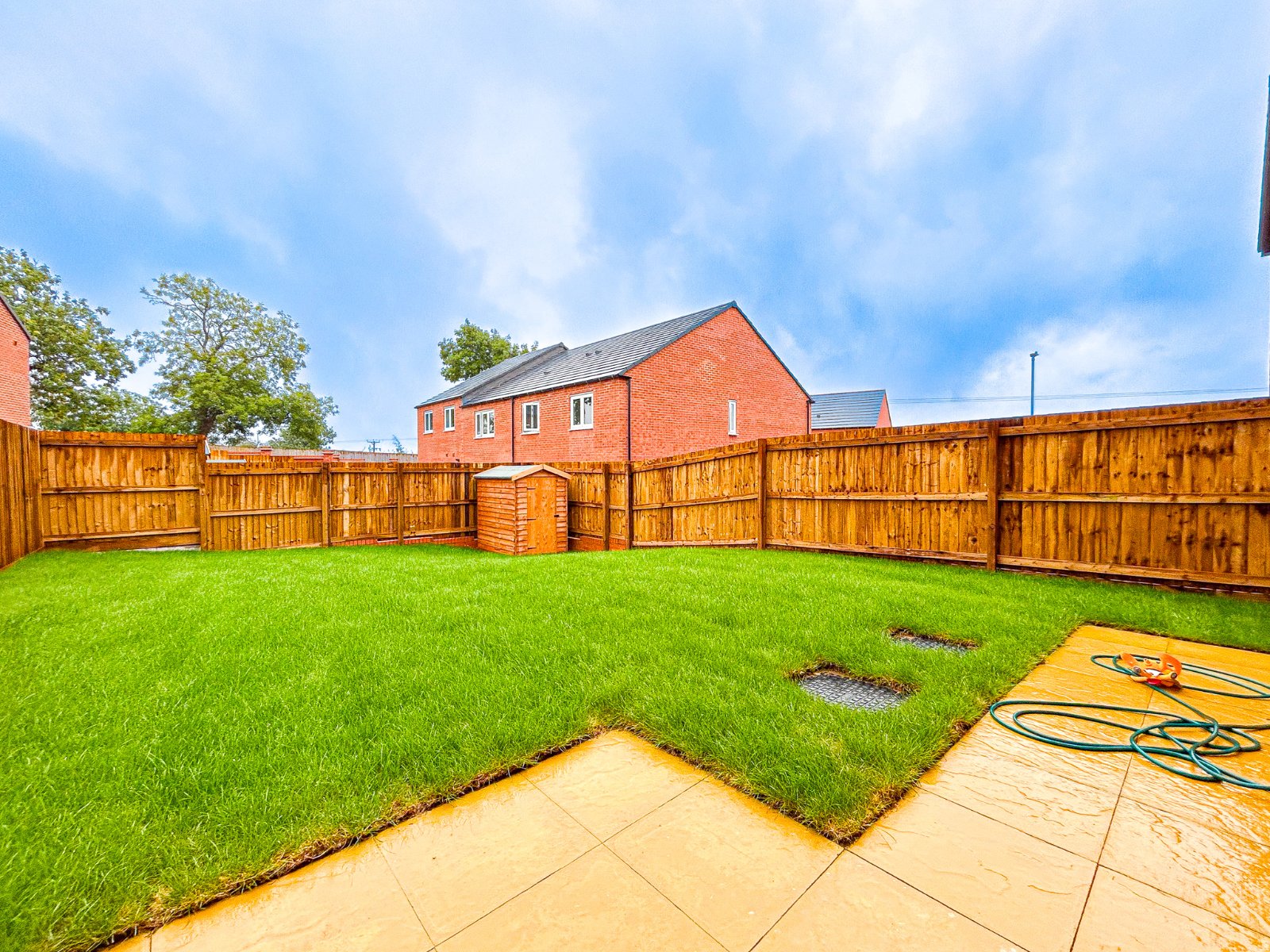 The private rear garden benefits from rear access to allocated parking, a neatly laid lawn, and a storage shed ideal for outdoor living.