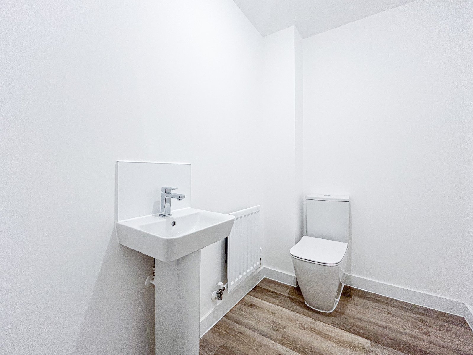 Immaculately presented throughout, the property offers stylish, contemporary living across three spacious floors. Upon entering, you are greeted by a generous hallway which includes a convenient downstairs WC. The heart of the home is the impressive open-plan kitchen/dining area, designed for modern living and finished with high-quality carpets and flooring. The sleek, fully fitted kitchen boasts integrated Bosch appliances and a contemporary finish, while the space is flooded with natural light from large patio doors to the rear garden, complemented by additional windows to the front and side. Downstairs you will also find a cozy living room with large window perfect for a cozy evening in.