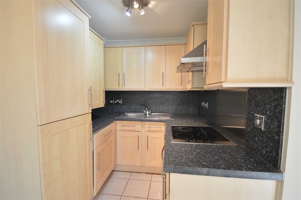 Kitchen 6'6" x 5'11" (1.98m x 1.8m). Plain ceiling. Wall and base units with wooden surfaces Electric oven and hob with extractor fan over. Sink and drainer unit with mixer tap. Integrated fridge and washing machine. Cupboard housing boiler.
