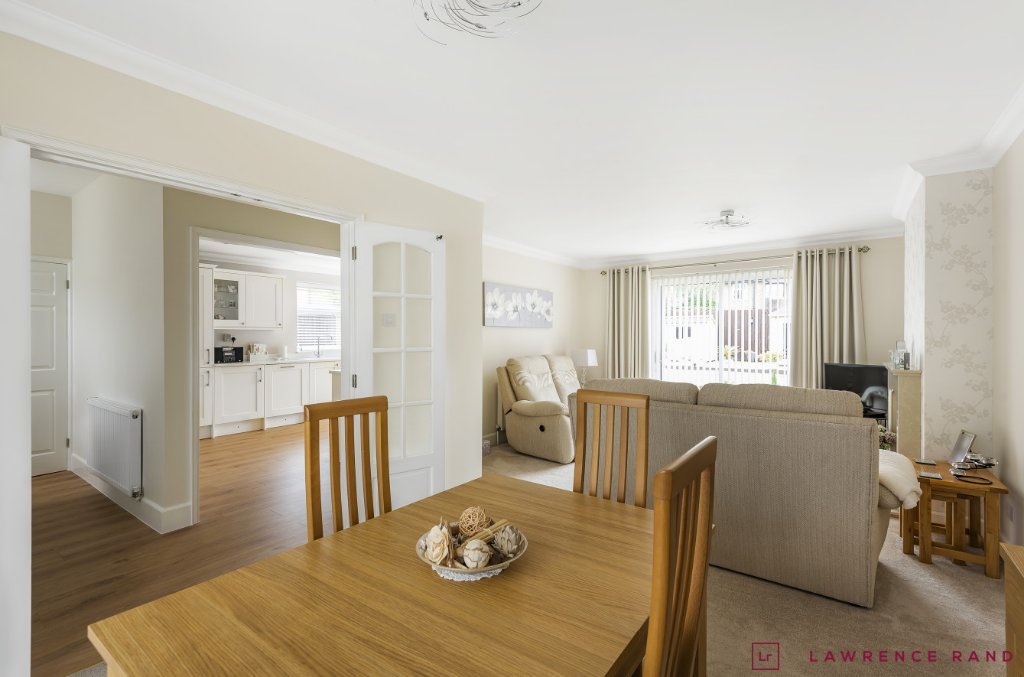 Entering the property into the hallway, double doors take you into the open plan sitting and dining room. This is a lovely, well-lit space with sliding doors providing access to the garden. The modern kitchen area offers vast cupboard and worktop space. The doors onto the garden flood the kitchen with natural light. The ground floor is finished off with a WC off the hallway. Upstairs, the first floor has a spacious landing giving access to three bedrooms. Two doubles one with fitted wardrobes, a single with fitted wardrobe and a bright family bathroom with overhead shower and a separate WC.