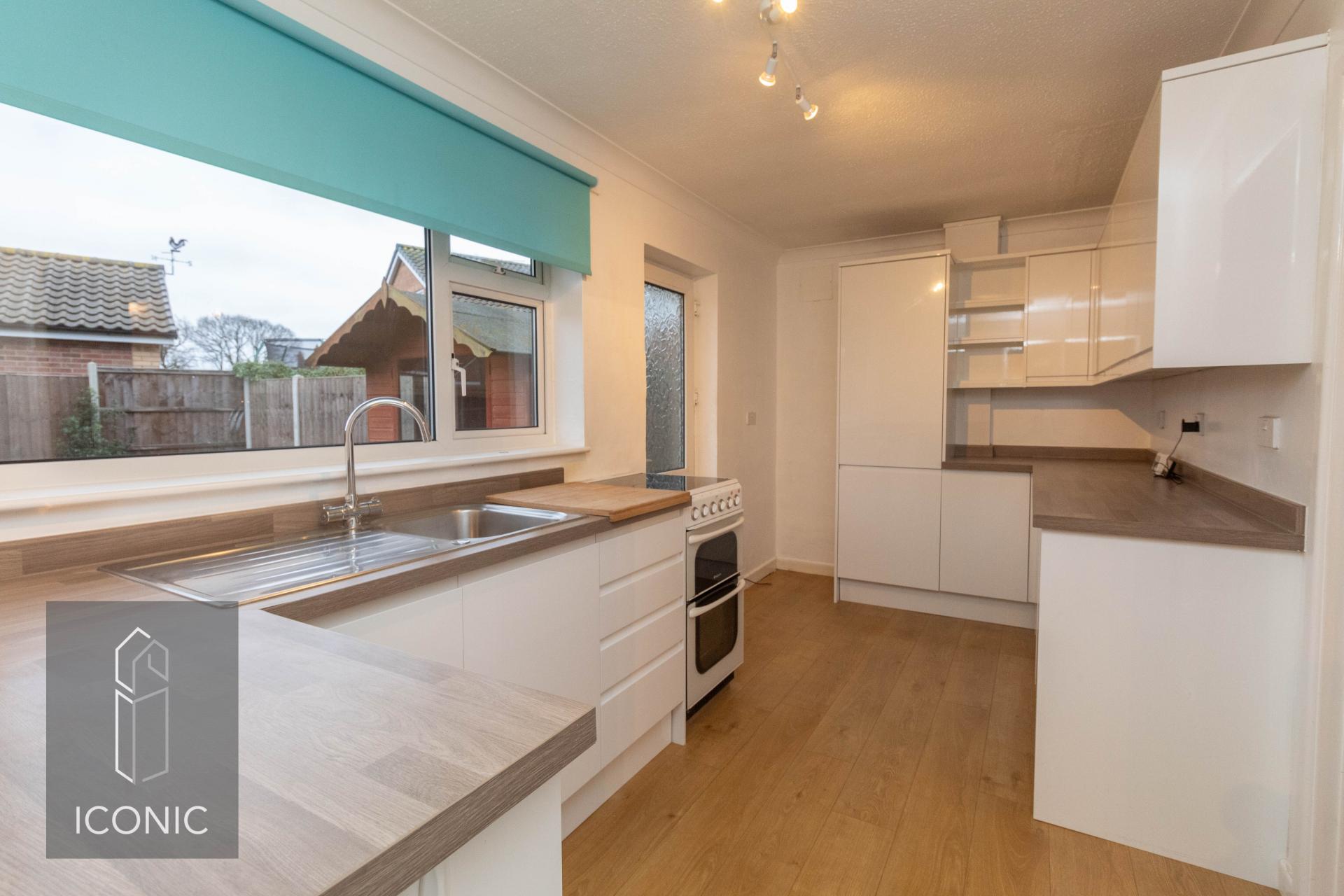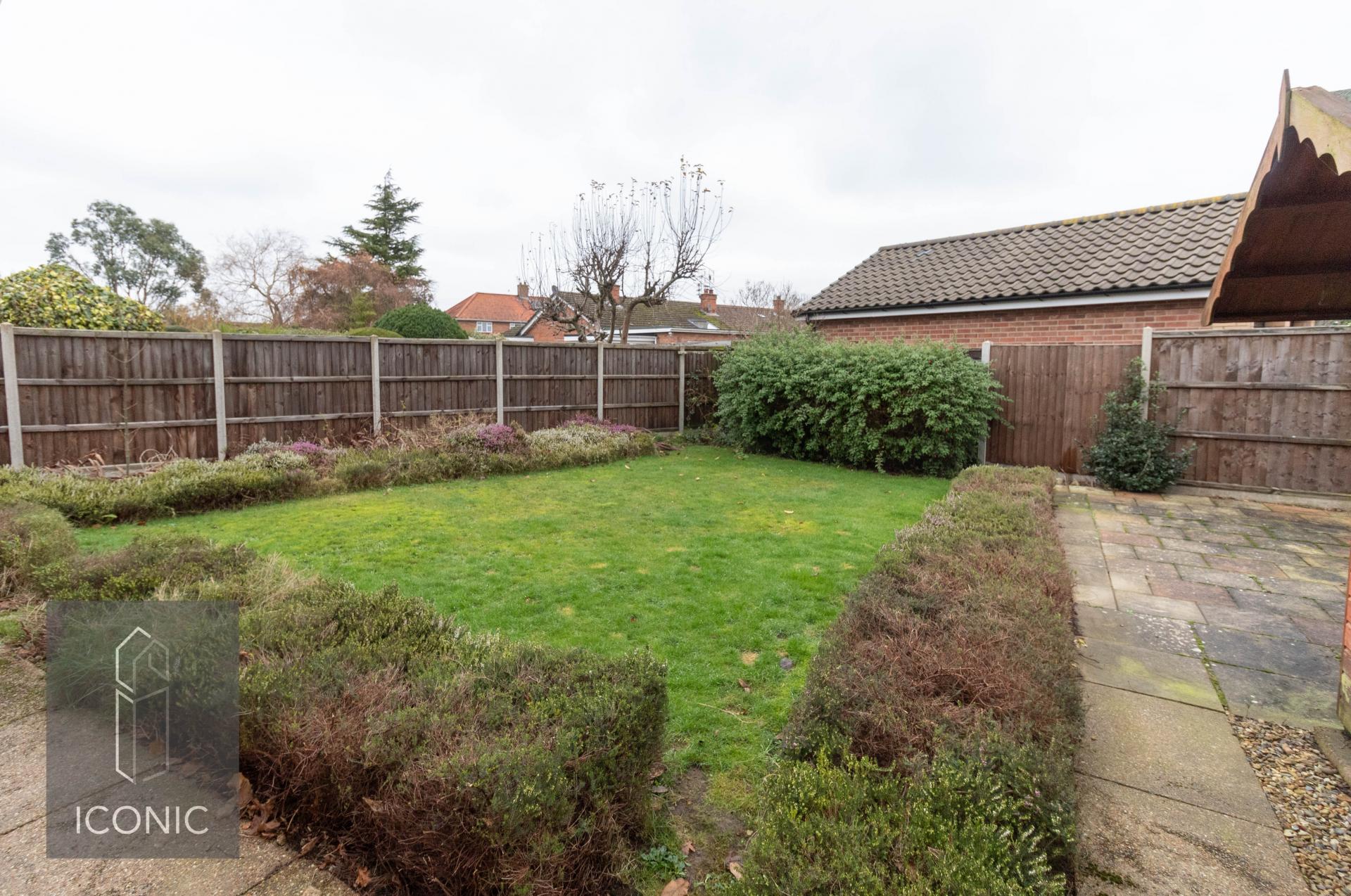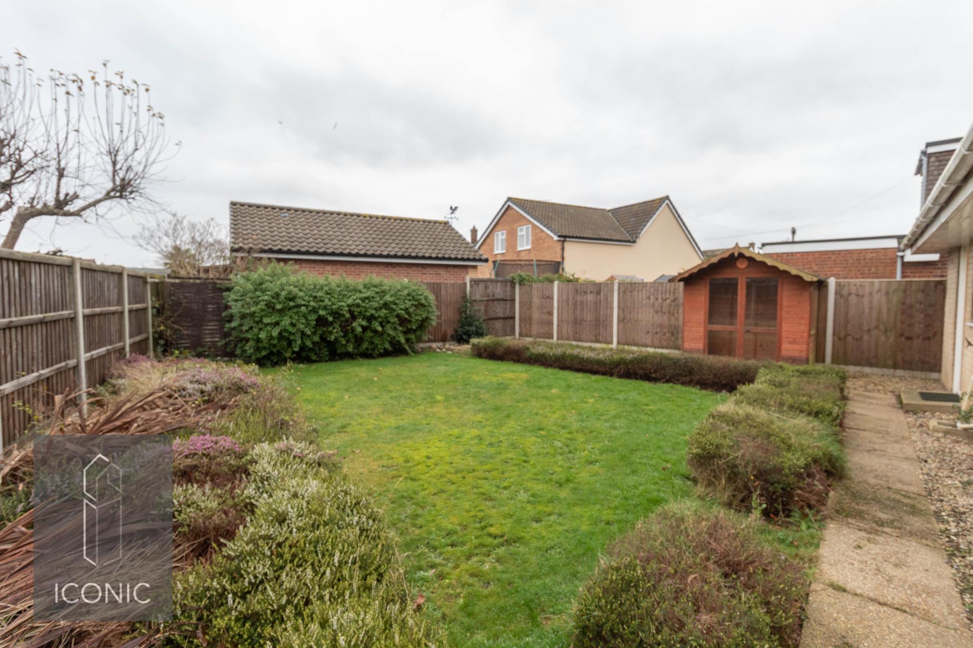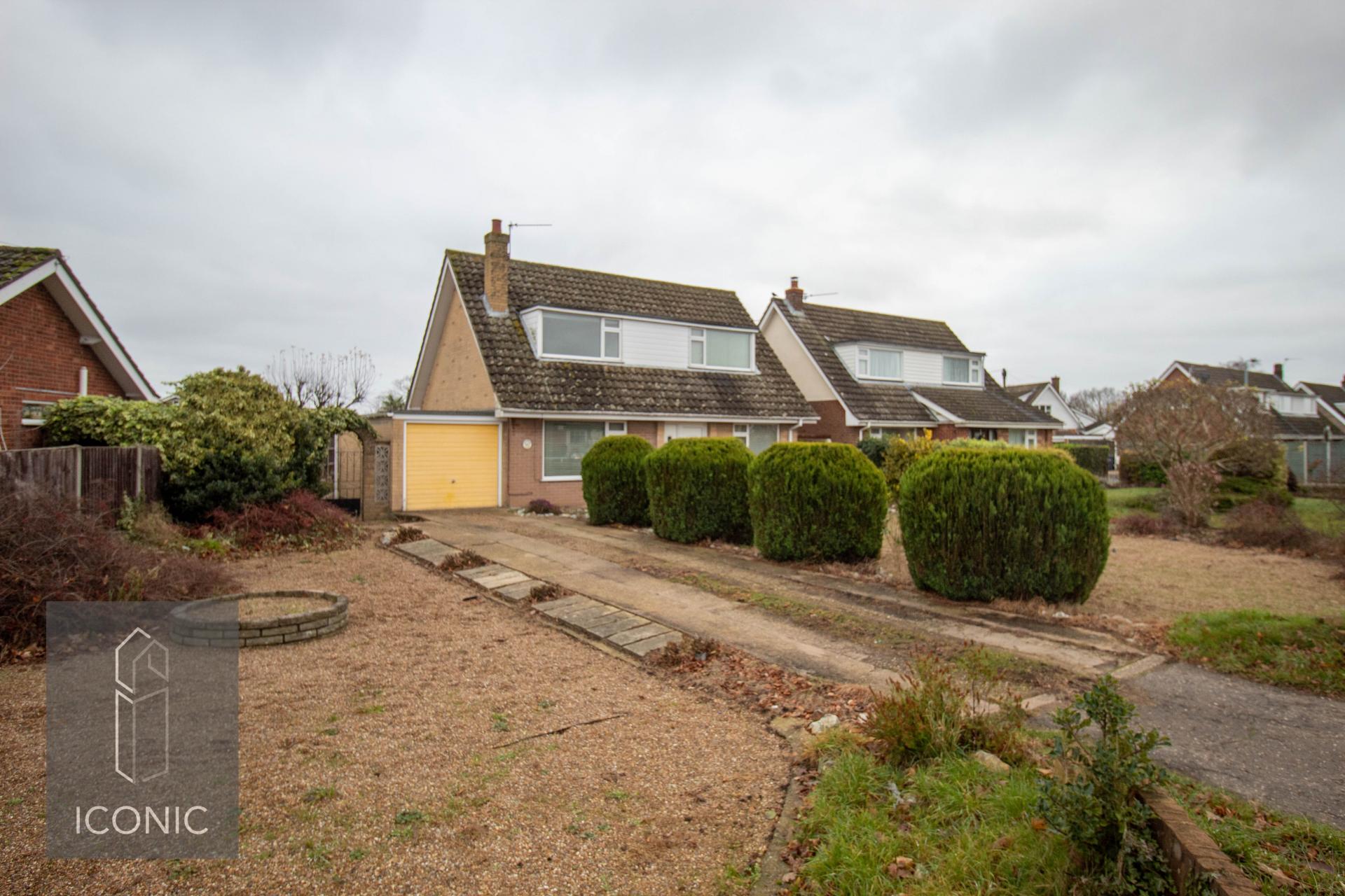 A two/three bedroom detached chalet home in the popular village of Horsford. Occupying a generous plot, this property is available immediately and early viewing is advised. The property accommodation comprises; entrance hallway, dual aspect sitting room, modern fitted kitchen, ground floor bathroom and a study/bedroom three. To the first floor there are two well proportioned bedrooms with the master bedroom benefitting from an en-suite shower room. To the outside there is a substantial frontage comprising of a large shingled area, driveway and further garden space. To the rear there is a lawn garden with separate patio area, all enclosed by timber fencing. There is also a garage providing ample of road parking and storage space. To view please call Iconic today.