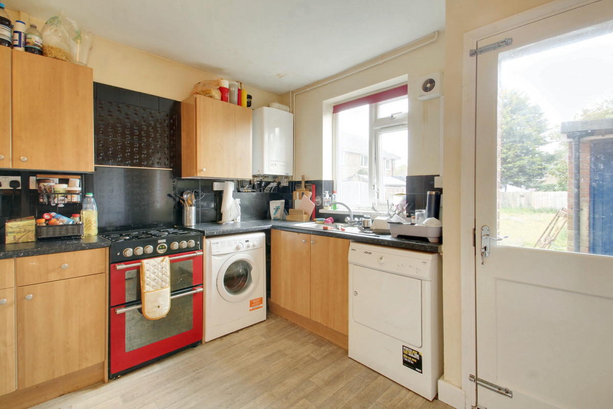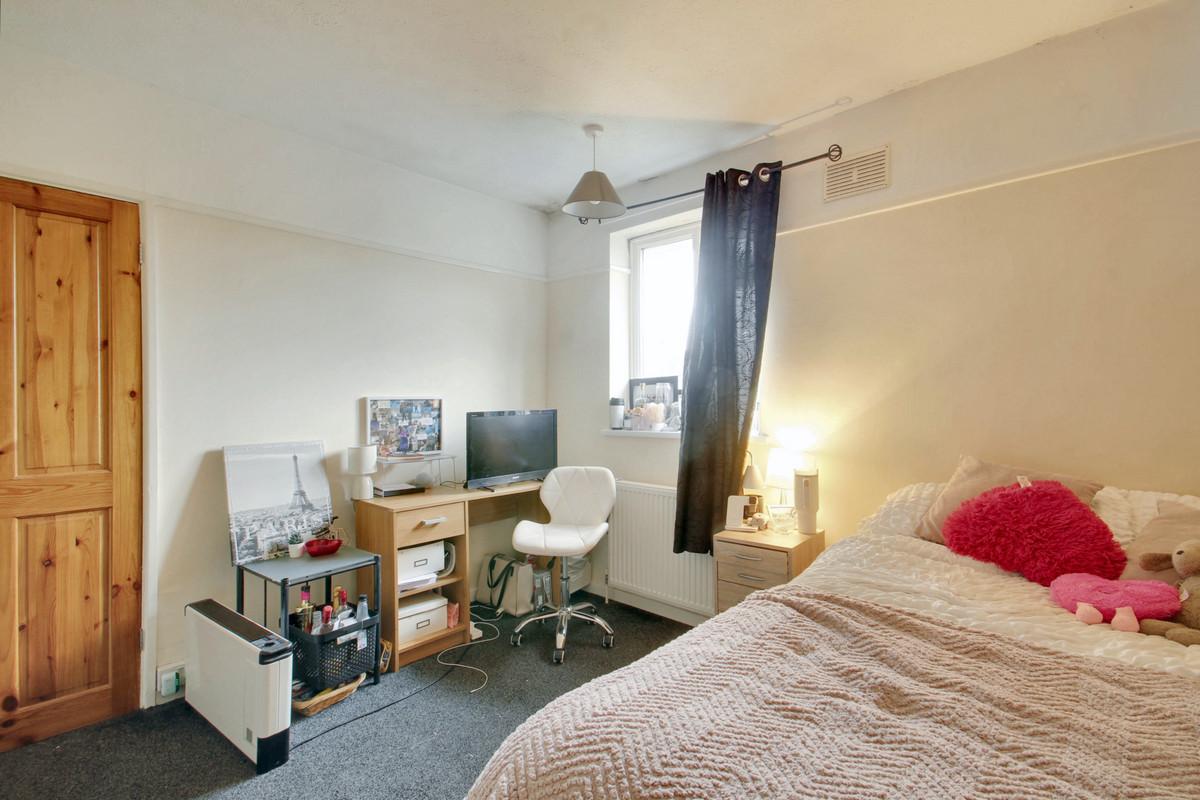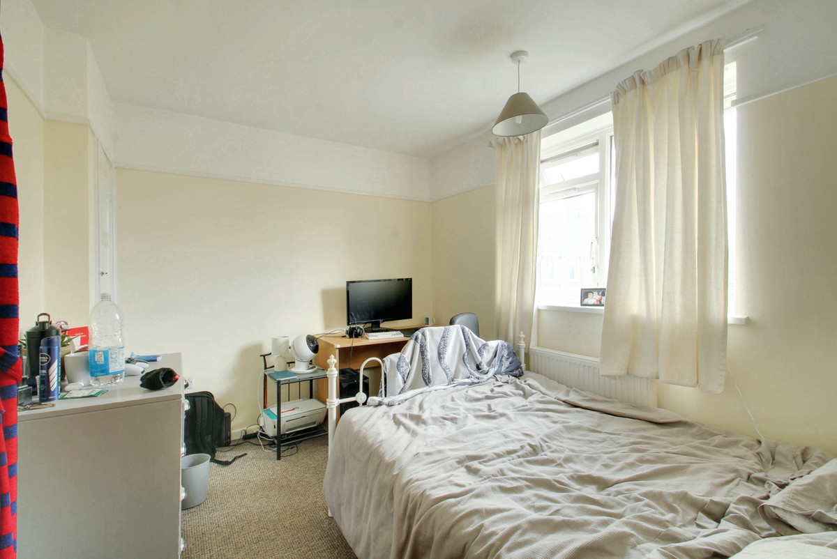 Downstairs you have one of the 4 double bedrooms which faces onto the back garden, large living room and modern kitchen. The kitchen comes with all white goods and has plenty of storage. The living room is also provided with a TV. The back garden has plenty of room for garden furniture and entertaining.