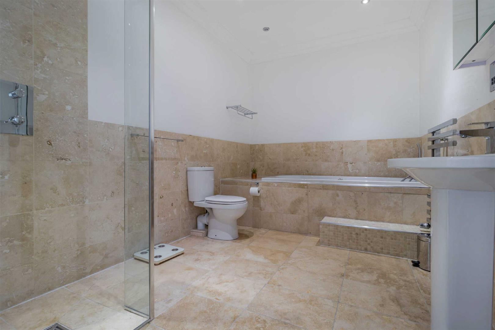 Ensuite - Double glazed window in hardwood surround, low level WC, fitted shower cubicle with overhead shower , shower attachment and mixer controls, fully tiled around the shower area, freestanding bath with external mixer tap, Georgian style coving, inset ceiling spot lights, ceramic tiled flooring, extractor fan, shaver point.