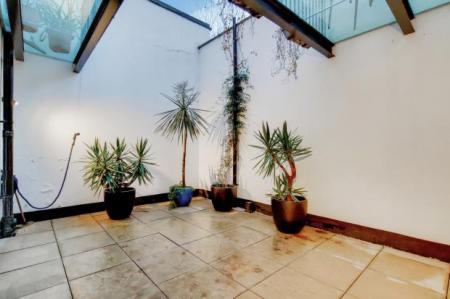 Begin your day with a delightful breakfast on the glass terrace, offering panoramic views of both the verdant surroundings and your own private patio below. The residence is thoughtfully furnished, seamlessly blending a modern twist with mid-century interior design, creating a bright and open-plan ambiance. This residence encompasses an open-plan lounge with an integrated kitchen island, a generously sized double bedroom, a contemporary bathroom featuring a walk-in shower, a guest WC, a private terrace, and an exclusive patio garden. The living area showcases tasteful interior decor, complemented by thoughtful finishing touches that evoke a tranquil atmosphere. The master bedroom features a sumptuously comfortable king-size bed, ample wardrobe storage, and French doors leading to a secluded patio garden. This home offers a stylish and comfortable living space, with floor-to-ceiling windows on both levels that go beyond providing ample natural light—it creates an atmosphere of openness and airiness. Noteworthy features include the inviting terrace where you can bask in the sunshine and relish the fresh air, the meticulously decorated interiors, and the property's convenient proximity to the trendy Shoreditch area.