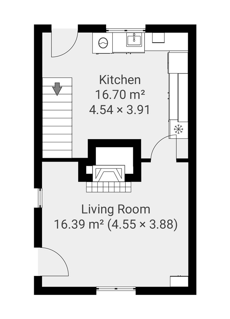 On entering, you are welcomed into a bright and spacious reception room, featuring large windows that flood the space with natural light and offer tranquil views over the garden. The fireplace creates a cosy focal point, making this the perfect setting for relaxing evenings and family gatherings.