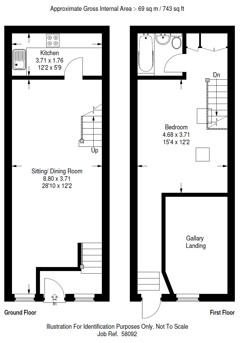 ACCOMMODATION The cottage is arranged with an entrance gallery with steps down to an open plan living/dining room with a separate kitchen. On the first floor is a large galleried bedroom with a separate bathroom. Outside is a small shared inner courtyard to the front. The property is set back from the street and is accessed via a private entrance to the front. Furnished, available immediately for a minimum of a 12 month tenancy. EPC rating E