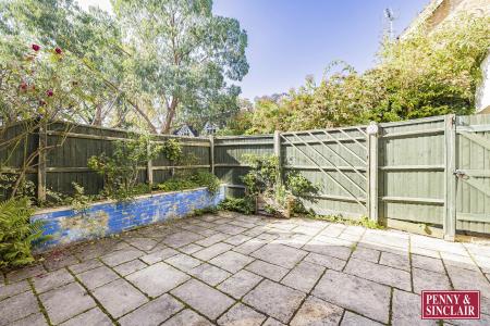 Enclosed suntrap courtyard garden accessible from the living room plus communal garden; residents street parking and bicycle storage is available.