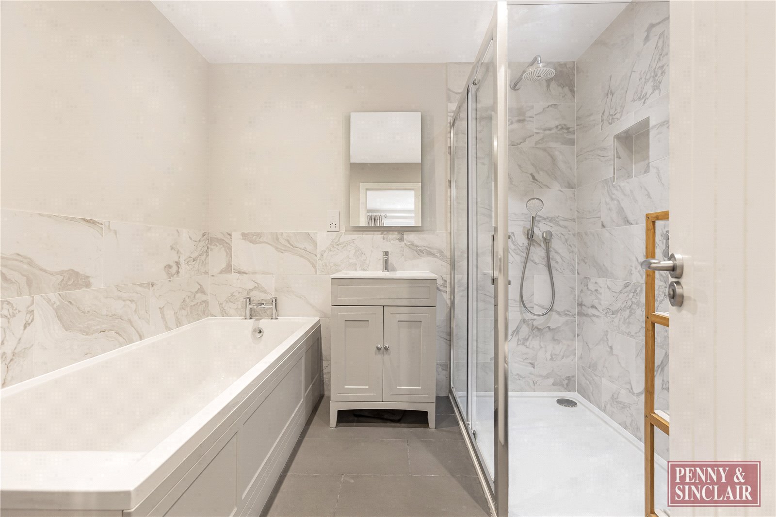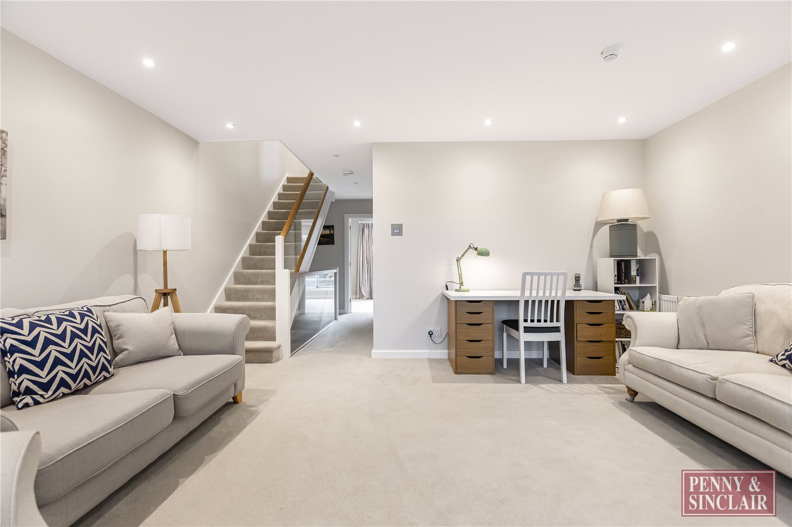 ACCOMMODATION Finished to a high standard throughout, this property offers flexible living accommodation arranged over three floors. The ground floor comprises an entrance hall which leads through to a modern fully fitted kitchen with space for dining, and French doors onto the courtyard garden. There is also internal access to the usefull garage/utility room. Stairs to the first floor lead into the large reception room with Juliette balcony; also on this floor is one double bedroom with an en suite benefitting from a bath and separate shower. The second floor offers two further double bedrooms, one of which is en suite, a single bedroom and a family bathroom. Available fully furnished.