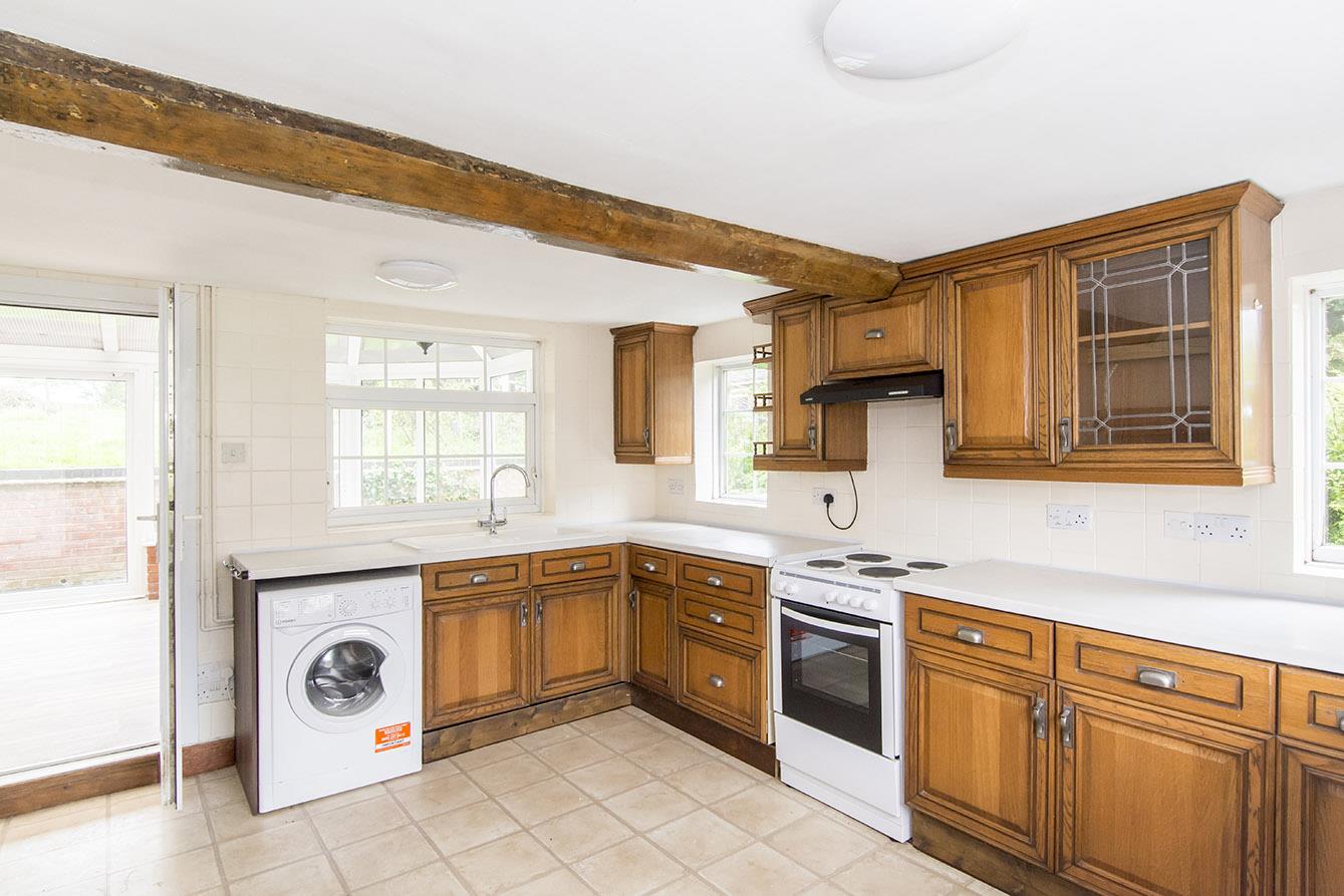 Kitchen/Breakfast Room - 4.27m x 3.38m (14'0" x 11'1") - Range of oak facing fitted base and wall units to include glazed display cabinets. Fitted electric cooker and automatic washing machine. Enamelled sink and drainer. Fitted under counter fridge and freezer. Exposed timber ceiling beam. Fitted feature coal effect woodburning stove (decommissioned) and brick chimney breast. Double glazed windows to the front, rear and side elevations. Radiator. Door to dining room and opaque double glazed door to:-