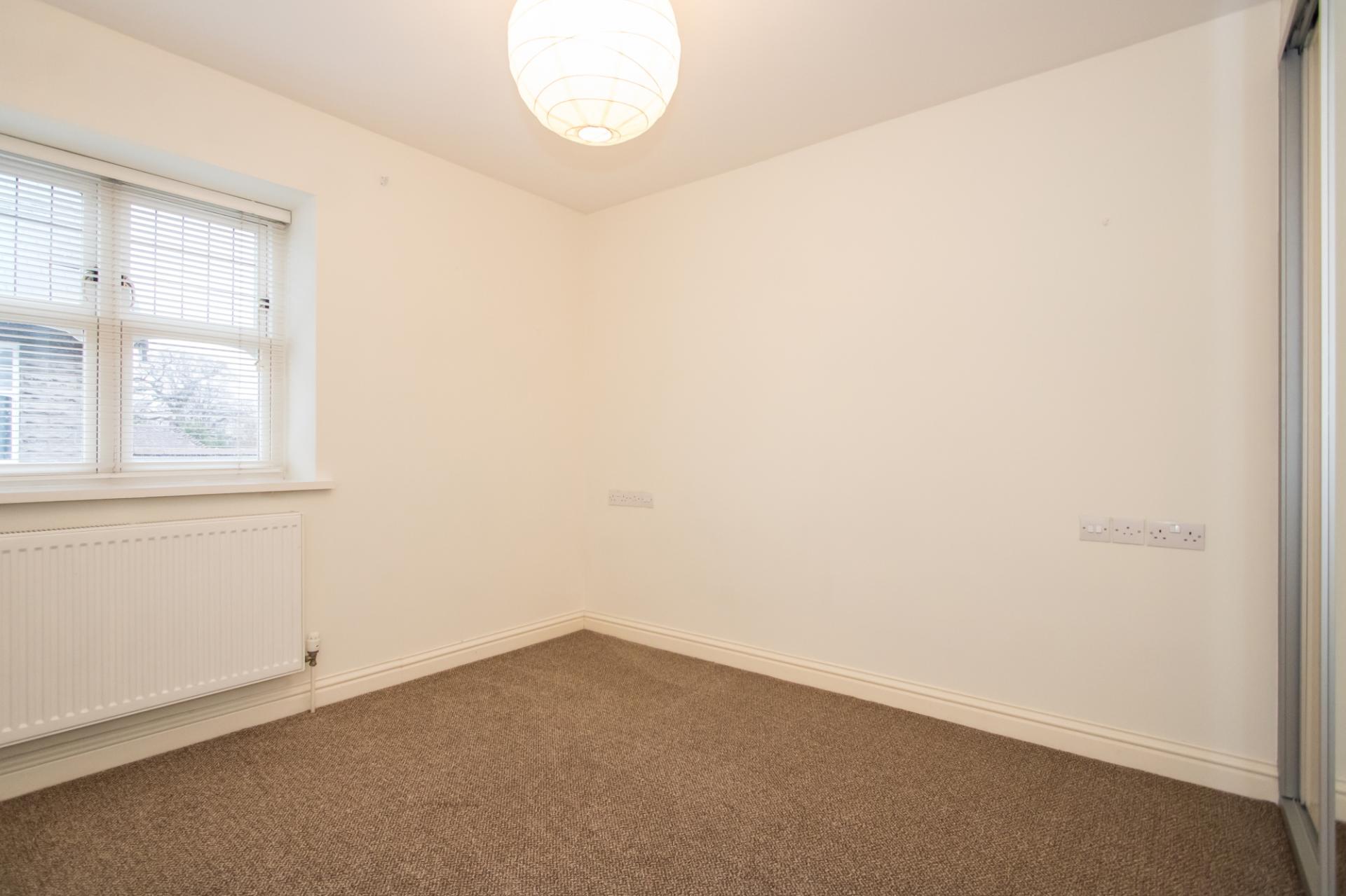 Double bedroom with extensive fitted wardrobes. New carpet. Hardwood double glazed window to the side with fitted Venetian blind. Power points. Central heating radiator. TV point.