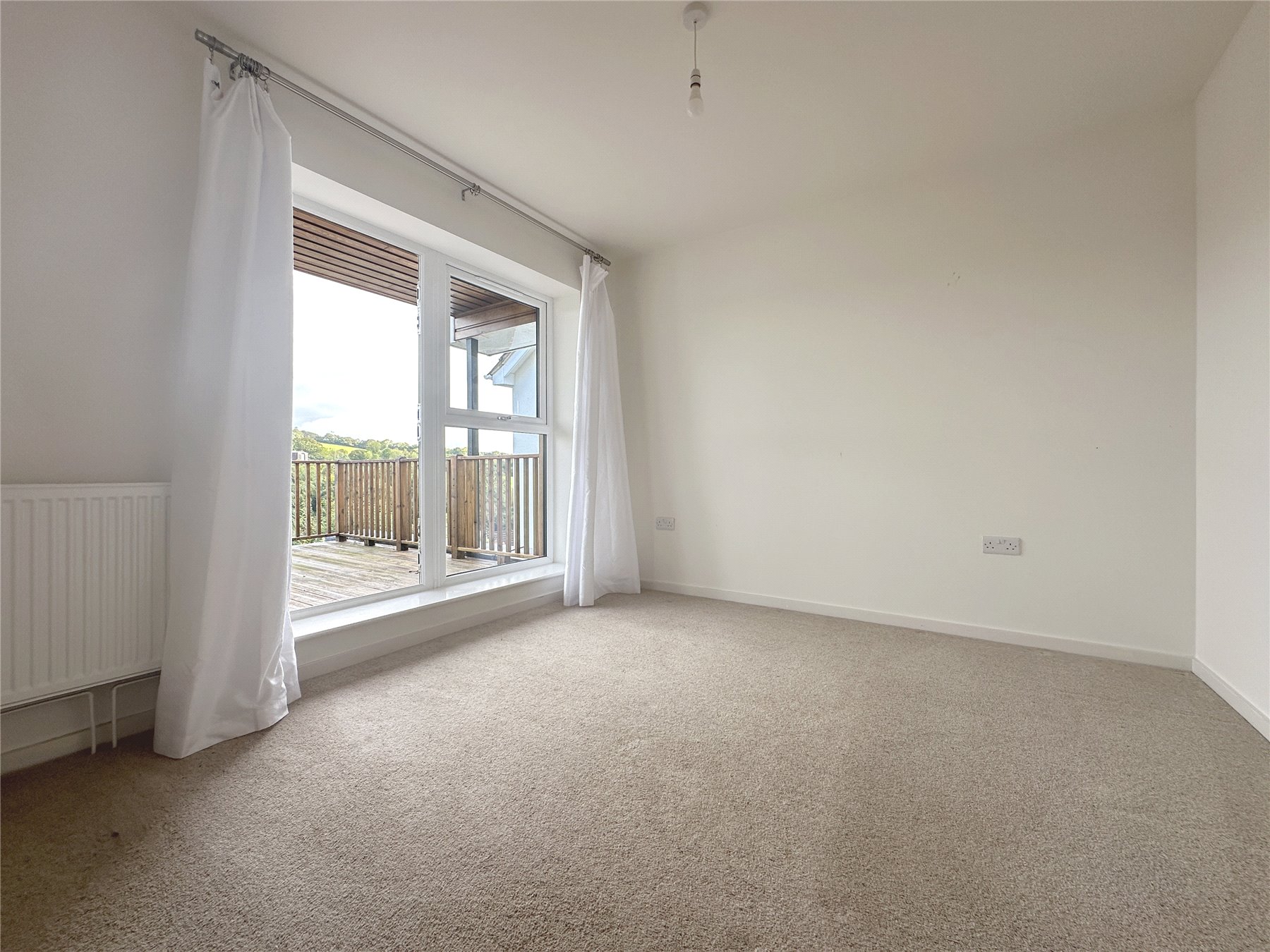 BEDROOM TWO 10' x 10'11" (3.05m x 3.33m). A good sized double bedroom with radiator, TV and telephone socket. Double glazed French door leading out to the DECKED BALCONY with far reaching views of the valley.
