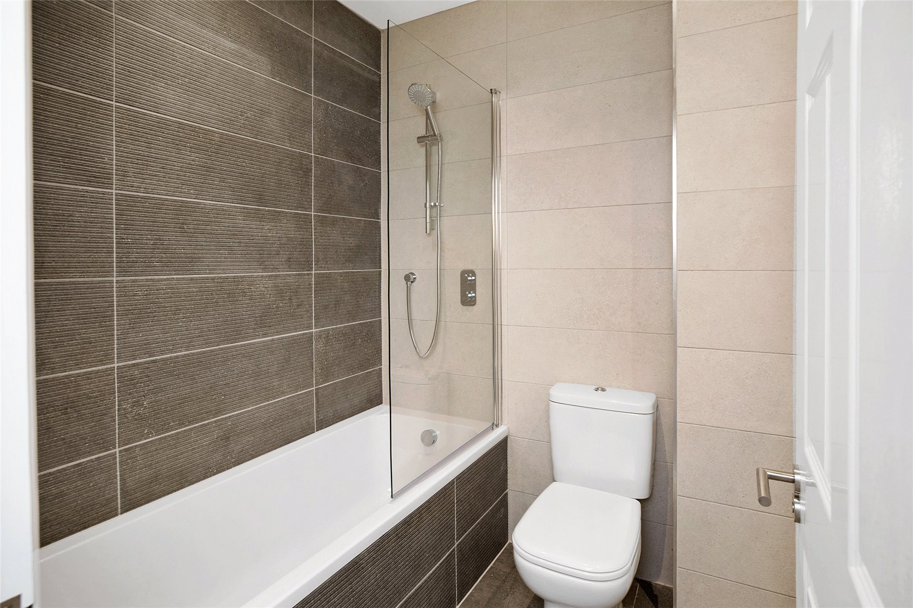 BATHROOM Bath with shower over, low level WC and wash hand basin set in vanity unit with mirror over. Heated towel rail.