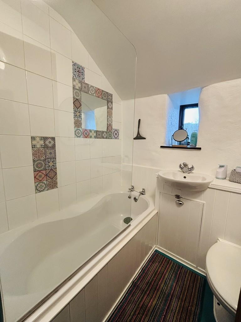 The accommodation comprises a light and airy kitchen equipped with a wide range of units and appliances, providing ample space for a dining area. The spacious lounge features an impressive fireplace and a log burner. On the first floor, you will find two bedrooms, along with a contemporary white bathroom suite that includes a bath with an overhead shower, a low-level WC, and a washbasin. To the rear, a tranquil cottage-style garden is situated, complete with a decking area.