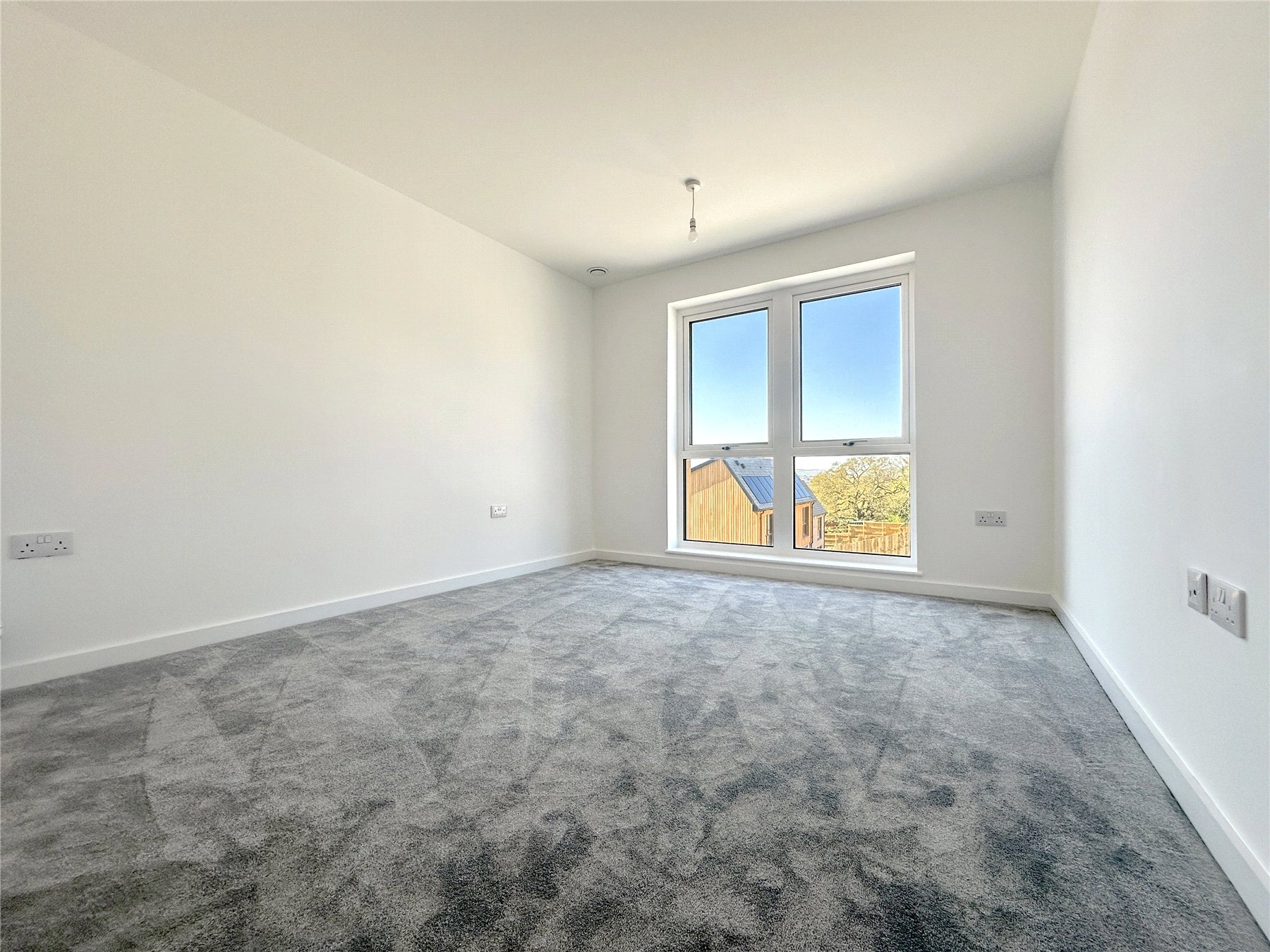 BEDROOM THREE 14'7" x 9'3" (4.45m x 2.82m). Another good sized, double room with one full-length triple-glazed window to the rear, overlooking the garden and fields beyond. Plush grey carpet. Radiator. Sockets. TV and Telephone point.
