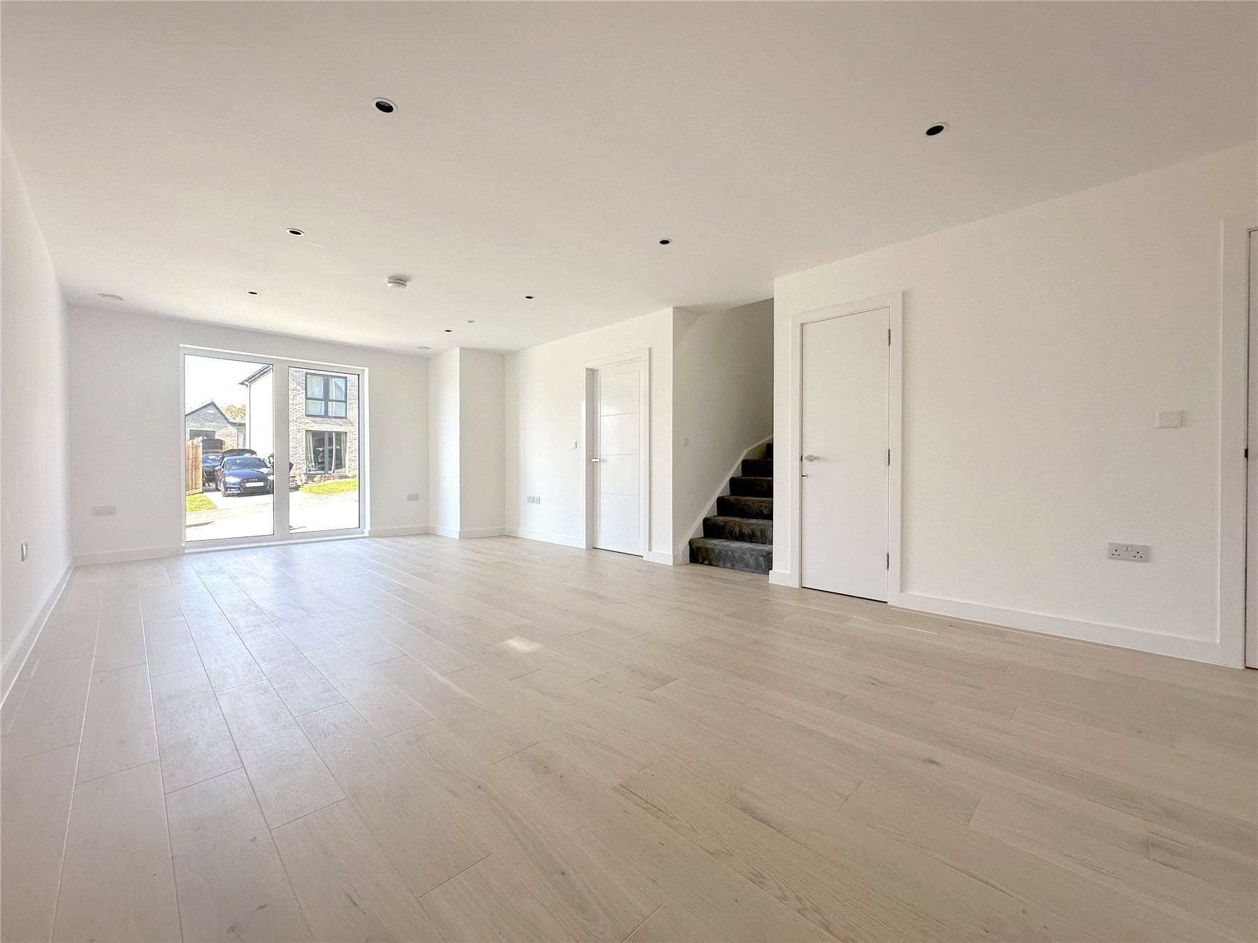 OPEN/PLAN LIVING 34'10" (10.62m) x 13' (3.96m) including the kitchen area. Bright and spacious living space with engineered oak flooring. Underfloor heating throughout this area. Full-length triple-glazed windows to the front. TV and telephone socket. Cupboard under the stairs for storage.