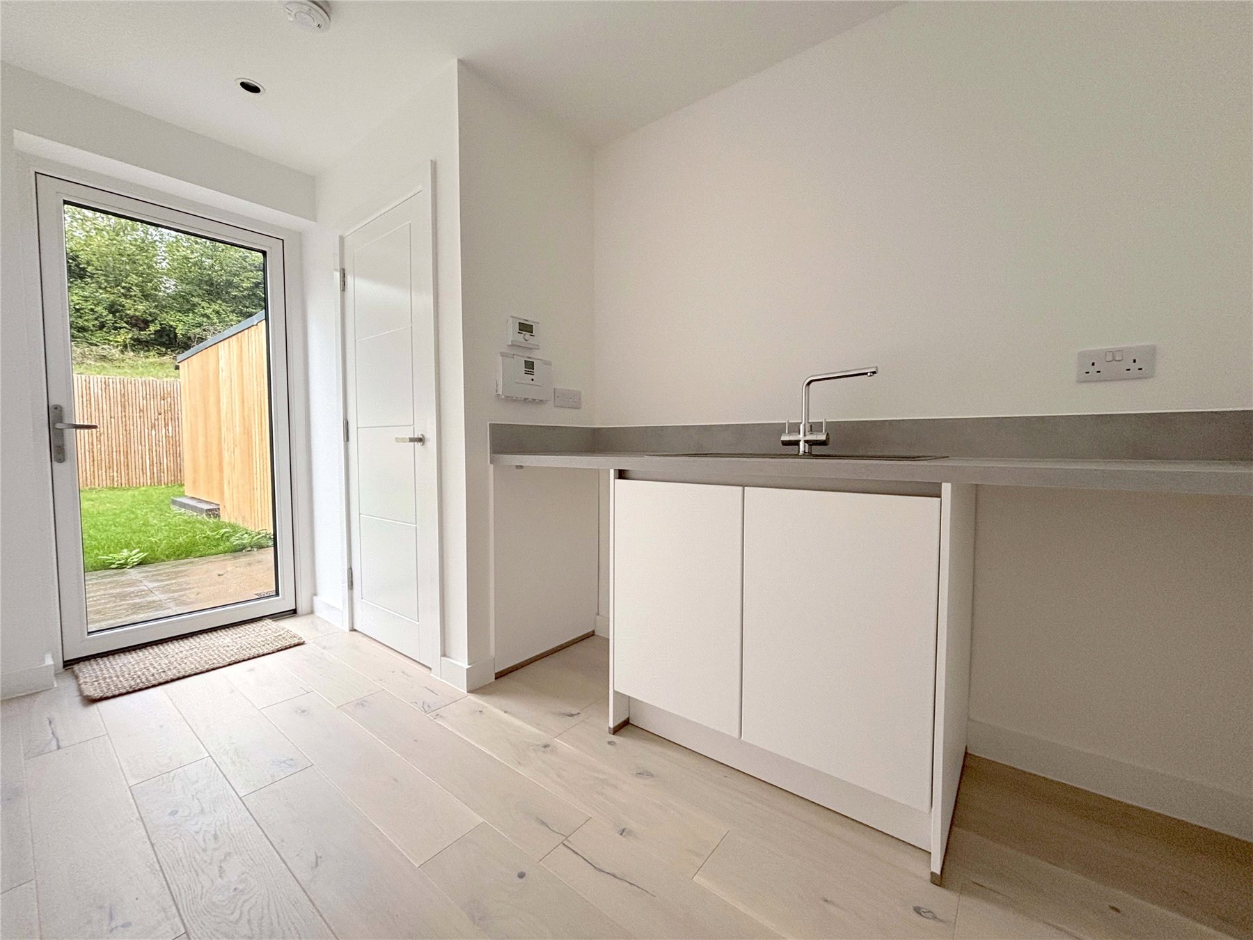 including the kitchen area Bright and spacious living space with engineered oak flooring. Underfloor heating throughout this area. Full-length triple-glazed windows to the front. TV and telephone socket. Cupboard under the stairs for storage.