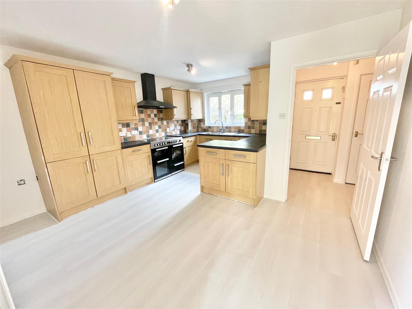 Kitchen/Dining Room - 4.55 x 4.09 at widest points (14'11" x 13'5" at wi - Range of matching eye-level and base units with work surfaces. Inset single drainer sink unit. Built-in appliances including a free-standing range cooker, extractor fan, integrated dishwasher, integrated fridge-freezer and washing machine. Under-stairs storage cupboard. Double-glazed window to the front elevation. Doorway leading to the lounge.